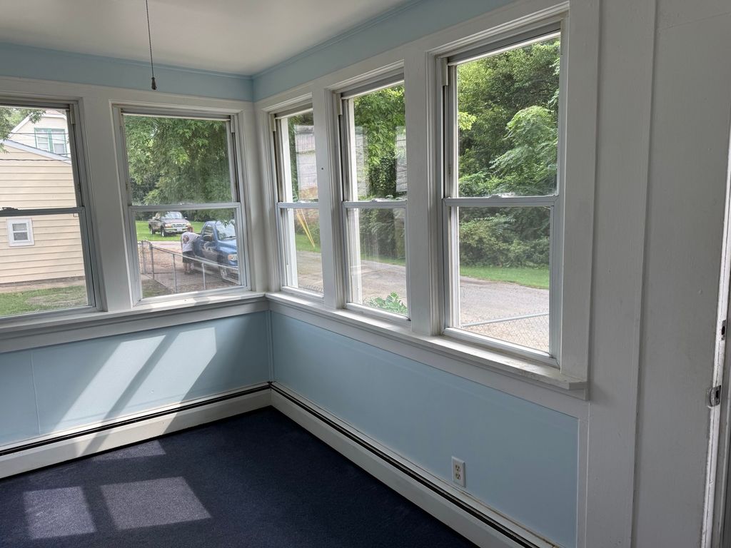Every man's dream garage! Extra-deep, heated and air conditioned 3-car (24x32) garage with 100-amp electrical service, built-in airline for a compressor, and 220V welding outlet is the ultimate setup for projects, cars and tools. Plus a newer storage shed for all the extras. Step inside and feel at home! The sunny, open main level flows from the kitchen to the dining room and living room, while the heated back porch with main-floor laundry invites you to sip coffee on crisp mornings. The updated bathroom features a whirlpool tub. Outside, the large fenced backyard with a new patio is perfect for gatherings. The roomy unfinished basement offers two entrances and a brand new water heater. And with the stove, refrigerator, washer and dryer all staying, you can move right in and start enjoying your new home!
