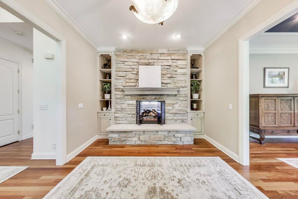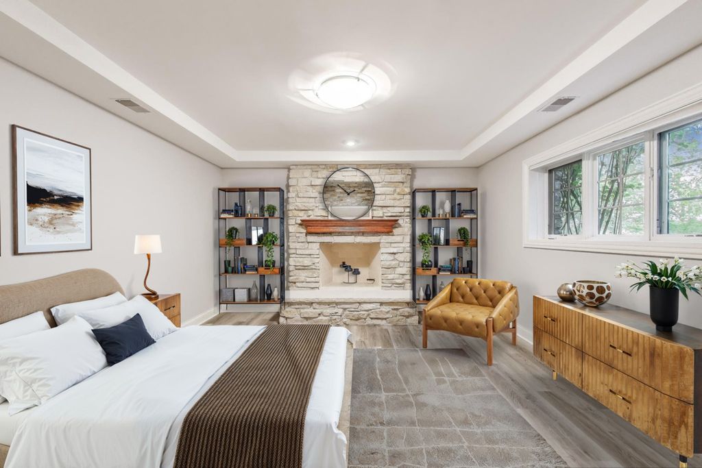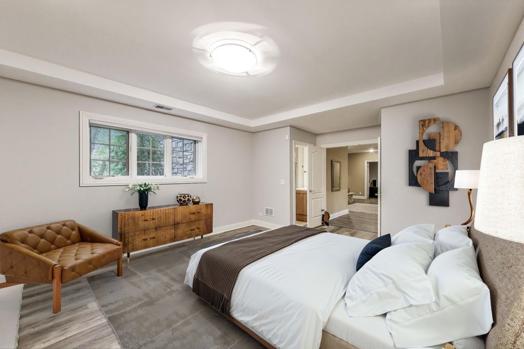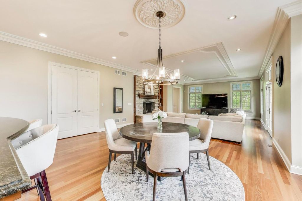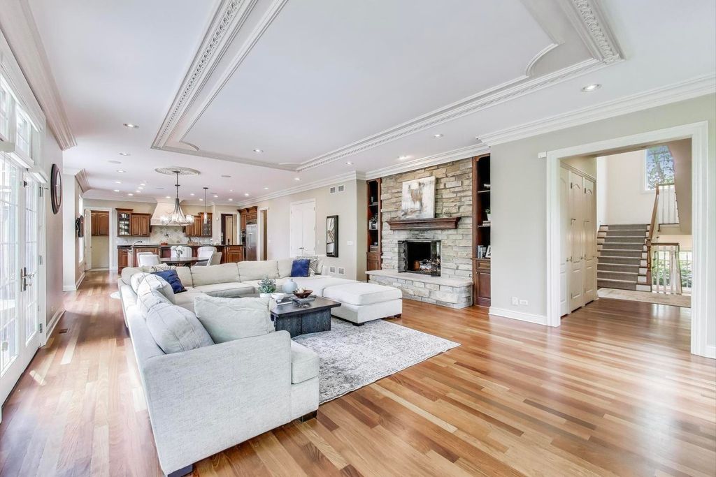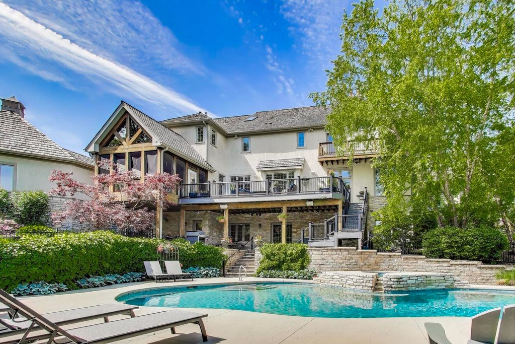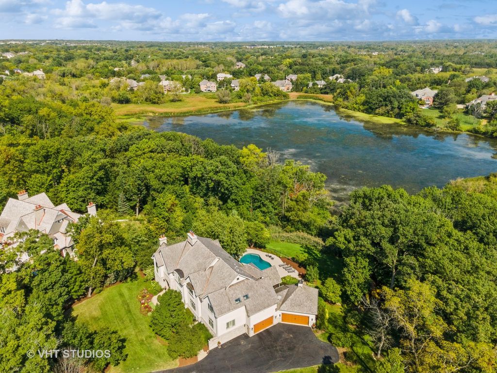 Nestled within the prestigious Tall Oaks Of Kildeer community, this exquisite home graces one of its most breathtaking lots, spanning 1.3 acres on a quite cul-de-sac, boasting captivating views of the 35-acre lake. Crafted with meticulous attention to detail, this custom residence exudes elegance and sophistication, sure to captivate even the most discerning buyers. Step through the grand foyer, where a double-sided stone fireplace sets the tone for luxurious living. The seamless flow leads to inviting spaces for both formal gatherings and casual entertainment, including a sitting area and a formal dining space complemented by a convenient butler's pantry. The heart of the home unfolds into an expansive kitchen and family room area, offering views of the lake and mature trees. A chef's delight, the gourmet kitchen features stainless-steel appliances, brand new Thermador cook-top, dual sinks, a generous island space, breakfast bar, and a spacious walk-in pantry. Adjacent, the inviting family room invites relaxation with its cozy fireplace and seamless access to the outdoor area, complete with newer Trex decking and exterior lighting. The main level further boasts a screened-in porch, a wood-paneled office with a fireplace, a versatile craft room, a mud/laundry room, back staircase, and 1.5 baths. Retreat to the second level, adorned with all-new flooring, the primary suite features a private balcony, his-and-her walk-in closets, and a spa-like bath featuring double sinks, a Jacuzzi tub, separate shower, and heated floors. Four additional bedrooms, two with en-suites and two sharing a Jack & Jill bathroom. The walk-out basement, with all-new flooring, presents the perfect setting for indoor-outdoor living, boasting a recreation room with fireplace, wet bar, workout room, theater room, bedroom, and 1.5 baths. Outside, the stunning backyard is a entertainer's paradise, featuring an in-ground pool with spa, sun-filled deck, and shaded patio, all overlooking picturesque views. Completing this exceptional residence is an oversized 4.5-car garage, catering to all your storage needs. With numerous updates including newer HVAC systems, water filtration system, decking, flooring, and more. Ideally located close to Deer Park and historic downtown Long Grove. Easy access to shopping, dining, major highways, A+ schools, and Stevenson High School.