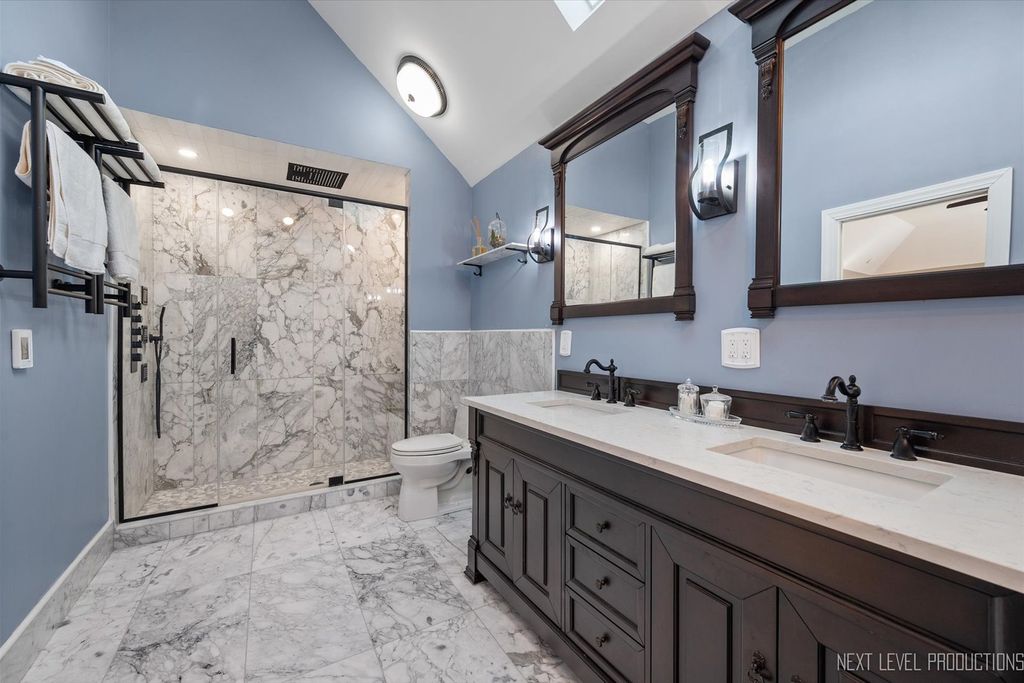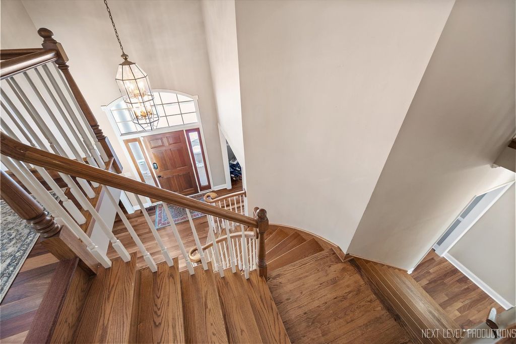 Beautifully updated custom built 3800 square foot home is ready for its next family! Welcoming two story foyer with curved split staircase & Brazilian cherry hardwood floors! Formal living & dining rooms with crown molding. Tastefully remodeled sunlit eat-in kitchen with all JennAir SS appliances, breakfast bar island, quartz counters & abundant cabinets open to the family room with attractive masonry fireplace. 1st floor den/office/bedroom#5 near full bath could easily be an in-law suite. First floor laundry with cabinets, utility sink & exterior door. Master bedroom suite with tray ceiling has 22x9 walk-in closet & 15x14 turret sitting room. Newly renovated luxury vaulted bathroom has heated floors, heated towel racks, double sinks, soaking tub & big walk-in shower with full body spray. Generous bedroom #2 with private brand new full bath plus 2 more bedrooms & an additional hall bath complete the second floor. Spacious maintenance free trex deck for outdoor entertaining. Huge unfinished basement and 3 car garage. So many new quality amenities & upgrades including: Master bath '24, kitchen '20, Roof '22, Sierra Pacific windows '19, dual HVAC & humidifier '23, Hardie board exterior '18, Brazilian cherry hardwood floors 1st floor & master '20, H2O heater '25, softener '23. Great location close to STC East HS, Wredling middle school, parks, shopping, dining, bike trails, Fox River, award winning park district & all that downtown St. Charles has to offer! Move right in and enjoy everything this fantastic home and neighborhood has to offer!