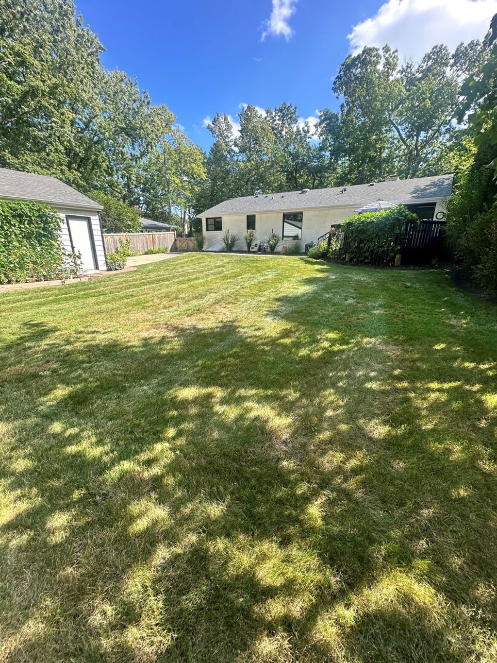 Renovated in 2023 down to the brick, this mid-century modern ranch is move-in luxury. Nestled in one of the most highly sought-after neighborhoods, South Park, this three bedroom, three full bath ranch has beautiful attention to detail. The living area with new tray-ceiling and see-through gas fireplace, open the senses with beauty and light. The gourmet kitchen's oversized quartz waterfall island houses the Grohe sink set and abundance of storage. Dacor stainless appliances set the kitchen standard for excellence. Visual Comfort, ArHaus and Emtek fixtures highlight this home. The dining area expands to the office and newly reinforced back deck and expansive backyard. The back deck has hidden electrical for a cold Plunge or hot tub. The primary bedroom ensuite has a full ceiling-to-floor shelved walk-in closet and changing room. The bath houses an oversized designer shower, single sink, and full-length illuminated horizontal mirror. The second bedroom was expanded for an optional king bedroom set. The second bath also has an oversized designer shower and lighted mirror. What once was the dining room are now floating stairs to the basement illuminated with the over-sized picture window and its light that brightens the basement. When walking down the stairs, the mirrored wall illuminates the recreation area with bright light shining from outside. The basement houses a large, secluded bedroom with full length, walk-in closet, and full bath. Egress stairs are hidden in this bedroom. The unfinished portion of the basement has a third large walk-in closet for more off-season storage, and new Samsung washer and dryer set. An EZ Breathe ventilation system is also housed which keeps the air fresh 24/7. New roof and insulation, new Pella windows throughout, new plumbing and electrical throughout along with the 150 AMP box, new furnace and venting, new gutter leaf-guards, front and backyards were fully regraded and professionally landscaped. A high-roof 2 1/2 car garage is steps away with more storage. Large, mature oak and maple trees surround this fully private home. A new 15" X 6" raised garden bed have grown the most incredible veggies. Come see what makes this home a diamond in the rough.