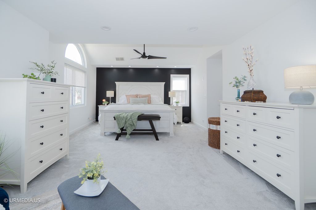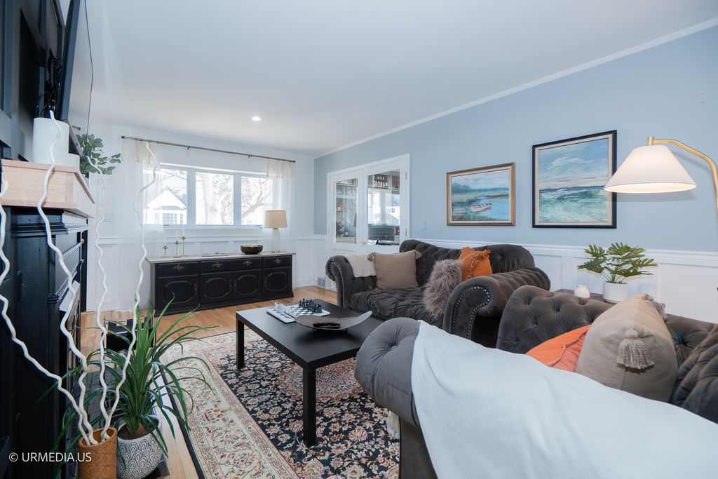 Gorgeous and extensively updated Barndominium-inspired Edgebrook 5-bedroom, 4-bath Colonial! This spacious home has been thoughtfully expanded and meticulously maintained, offering 4 bedrooms and 3 bathrooms on the second floor, including a generous primary suite with his and hers closets and a large private luxury bath with double vanities. The second bedroom features an en-suite bath, while a third full bath serves the remaining two bedrooms. A main floor bedroom and full bath provide flexible living options for guests or multigenerational needs. The heart of the home is the open-concept kitchen, featuring sleek wood cabinetry, granite countertops, stainless steel appliances, and a connected eating area that flows into the expansive great room. The family room features a stunning Italian ceramic fireplace with a custom TV build-out-perfect for entertaining. Extensive exterior updates include all-new Hardie board and Nichiha siding, brand-new double-hung vinyl windows, upgraded 1" exterior wall insulation for enhanced energy efficiency, new gutters with copper fascia, new exterior lighting, a new roof, and new public sidewalks. A 5' steel fence surrounds the front and south side of the home, while a newly built wood privacy fence encloses the backyard. The attached 3-car garage features brand-new garage doors and openers, offering both functionality and curb appeal. Located just steps from Wildwood School and Park, and within walking distance to local shopping, the Forest Preserve bike trail, and the Metra. Easy access to I-90/94 makes commuting a breeze.