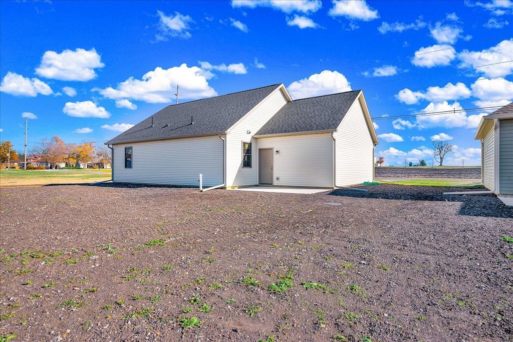 New construction at this price is almost unheard of-especially with the level of quality and craftsmanship found in this home. Built by local builder Nick Uphoff, this beautifully designed ranch offers an open-concept layout with 3 bedrooms and 2 full baths. The custom kitchen features Quartz countertops, soft-close dovetail cabinetry, stainless steel appliances, a walk-in pantry, and convenient main-floor laundry. The full, unfinished basement provides an easy opportunity to add more than 1,200 square feet of additional living space. It's already complete with a rough-in for a full bath and includes an egress window, making it perfect for a future bedroom or bonus room. The finished two-car garage comes complete with drywall, paint, and trim with easy access to a backyard concrete patio. The front yard has been freshly sodded, and the backyard will be seeded as soon as weather permits. This home offers the best of both worlds-enjoy the ease of in-town living while soaking in peaceful, countryside-style views from your front porch. If you're seeking comfort, quality, and scenery all in one, this property delivers both.
