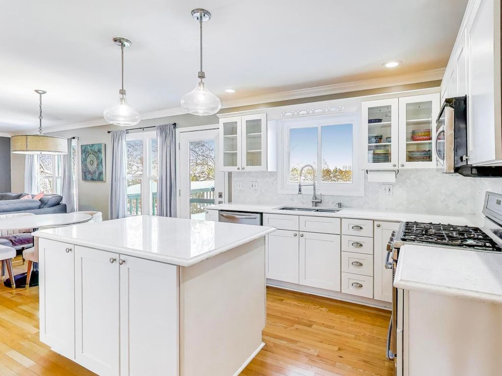 THREE FULL FLOORS OF LIVING SPACE! FOUR/FIVE BEDROOM 3.5 BATH CUSTOM-BUILT HOME TUCKED IN A QUIET CUL-DE-SAC ON A FENCED THIRD OF AN ACRE. REMODELED STAINLESS EAT-IN KITCHEN WITH GORGEOUS QUARTZ COUNTERS AND NEW HARDWOOD OPEN TO AN INVITING FAMILY ROOM GRACED WITH A GAS-STARTING FIREPLACE, FORMAL DINING ROOM WITH POCKET DOORS, A LARGE OFFICE, AND HALF BATH, ALONG WITH A SPACIOUS LAUNDRY ROOM COMPLETE THE FIRST LEVEL. THE DECK PROVIDES BREATH-TAKING VIEWS. THE SECOND STORY HAS NEW WARM HARDWOOD THROUGHOUT. THE DOUBLE DOOR PRIMARY BEDROOM BOASTS VAULTED CEILINGS, LUXURY EN SUITE AND AN EXPANSIVE WALK-IN CLOSET. TWO ADDITIONAL GOOD-SIZED BEDROOMS AND UPDATED HALL BATH COMPRISE THE SECOND LEVEL. THE FINISHED WALK-OUT BASEMENT RECREATION ROOM SPORTS NEW LUXURY VINYL FLOORING, ADDITIONAL BEDROOM/FLEX SPACE AND FULL BATH. THE PERFECT SPOT FOR FAMILY MEMBERS DESIRING PRIVACY. THE AMAZING WORKROOM/STORAGE AREA, LOCATED UNDER THE GARAGE, CAN BE ACCESSED FROM IN OR OUTSIDE. THIS SPACE IS IDEAL FOR STORING GARAGE "TOYS" AND TOOLS TO FREE UP GARAGE SPACE. SO MUCH NEW HERE SINCE PURCHASE: ROOF 2019, FURNACE AND A/C 2018, HOT WATER HEATER 2021, REFRIGERATOR/WASHER/DRYER 2024, KITCHEN, NEW WINDOWS/DOORS 2019, FENCE, BEAUTIFUL HARDWOOD AND LUXURY VINYL FLOORING, CARPET, AND A FRENCH DRAINAGE SYSTEM. TRULY A HOME TO MEET ANY FAMILY'S NEEDS! COME SEE THE ATTENTION TO DETAIL INSIDE AND OUTSIDE OF THIS CUSTOM HOME. A GREAT VALUE AND LOCATION! THE HOME IS IN GOOD CONDITION AND BEING SOLD "AS IS".