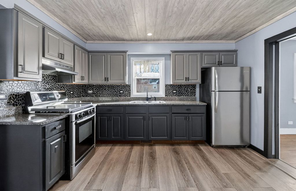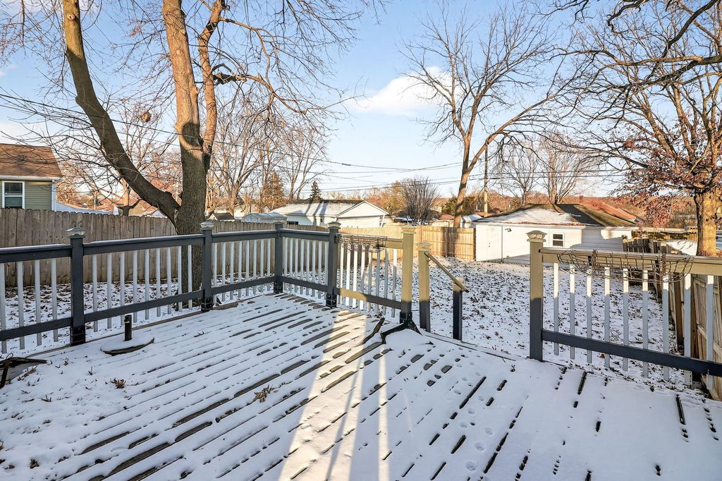 Welcome home to this charming and thoughtfully updated bungalow in the heart of Crest Hill! This classic home blends timeless character with modern finishes, offering a comfortable and efficient layout designed for today's lifestyle.The welcoming front entry opens into a bright living room featuring wood laminate flooring, neutral designer tones, and a striking stone-style accent wall that adds warmth and architectural interest. Natural light fills the space, creating an inviting setting for everyday living or entertaining. The updated kitchen blends style and functionality with two-tone cabinetry, stainless steel appliances, contemporary hardware, and a modern mosaic tile backsplash. A wood-plank ceiling detail enhances the cozy bungalow aesthetic while maintaining a clean, updated feel. The bedrooms are comfortably sized and finished in neutral tones, with two bedrooms upstairs and one conveniently located on the main level. Adjacent to the kitchen is a room with custom open shelving that makes a great office or dining space. Two full updated baths round out the main living area. A landing off the kitchen offers additional usable space for storage, a reading nook, or workspace. The full unfinished basement provides laundry space, excellent storage and future finishing potential, with mechanical systems conveniently accessible. The heated rear porch provides valuable year-round living space with views of the backyard and easy access to the deck overlooking a fully fenced yard, ideal for entertaining, gardening, or quiet evenings outdoors. Mature trees add shade and privacy, while the detached garage enhances everyday convenience. Located in a well-established neighborhood of Crest Hill, this home offers easy access to local parks, shopping, dining, and nearby Joliet amenities, along with quick connections to I-55 for commuters. Crest Hill is known for its welcoming community atmosphere, affordability, and convenient southwest suburban location. Don't miss this wonderful opportunity, schedule your private showing today!