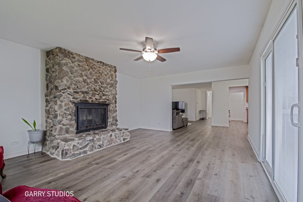 Sprawling move-in-ready ranch home with stair-free living and all major updates already taken care of! This home features four bedrooms, two updated full bathrooms, new vinyl flooring (2021), a cozy gas-burning fireplace, and a nice kitchen with a tile backsplash and plenty of storage. Major improvements include a new roof (2022), gutters (2022), leaf guards (2022), siding on house, garage, shed (2022), windows (2019), furnace (2021), air conditioning (2021), water heater (2021), washer and dryer (2021), driveway (2024), and a radon mitigation system. The fully fenced yard offers great outdoor space, two sheds, patio, and an extra deep two-car detached garage. Perfectly situated on a quiet cul-de-sac near parks, trails, shopping, dining, and major commuter routes such as 290 and I-90, this home offers comfort, convenience, and access to District 54 and District 211 schools.