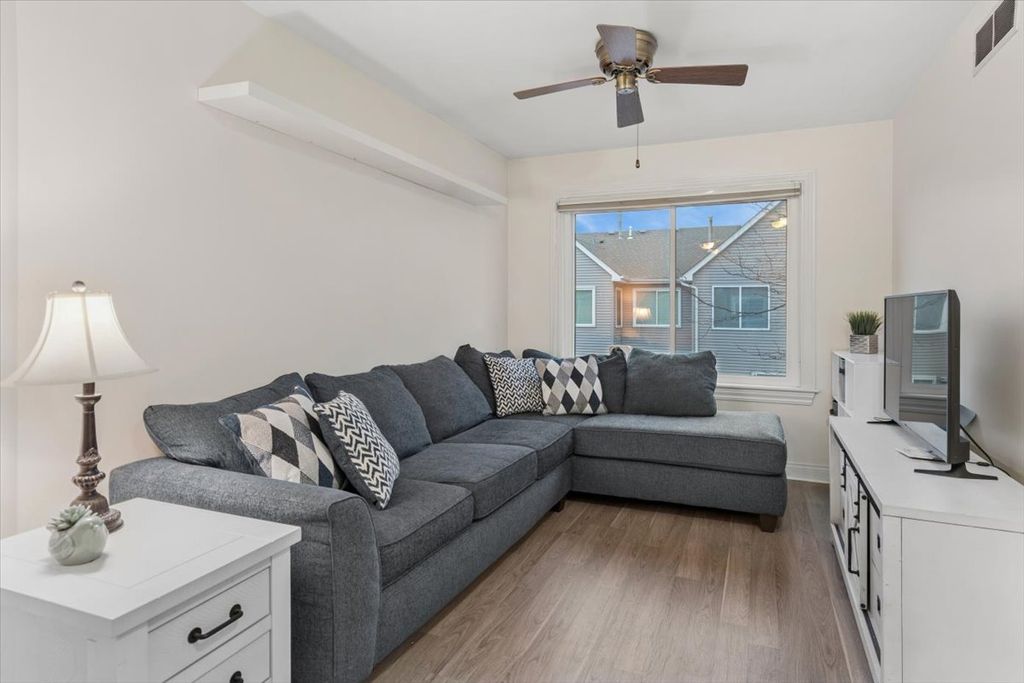 Welcome home to this fantastic end-unit condo in the desirable Woodmere community! This beautifully maintained home features a bright, spacious eat-in kitchen with white cabinetry, a large island, quartz countertops, and stainless-steel appliances, along with access to a large balcony. Brand-new luxury vinyl flooring (2025) extends throughout both the first and second floors, giving the home a fresh, modern feel. Upstairs, you'll find a generous primary suite with double closets and a private bath complete with a relaxing soaking tub. A second bedroom, another full bath with custom walk-in shower, generous loft area, and a convenient laundry space with a 2022 washer/dryer complete the upper level. The finished lower-level office/den provides fantastic extra space for work or play. Numerous major updates include new triple pane windows and patio door (2021), furnace (2022), A/C (2018), roof (2017), and garage door opener and springs (2022), giving you peace of mind for years to come. Great location within Center Cass District 66 and close to shopping, dining, and parks. Welcome home!