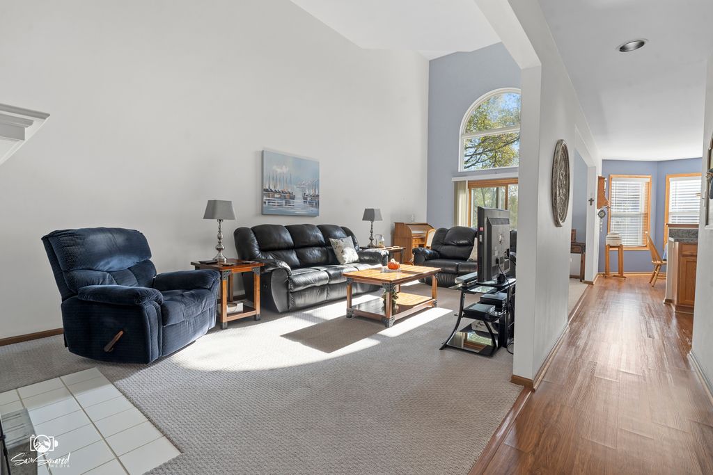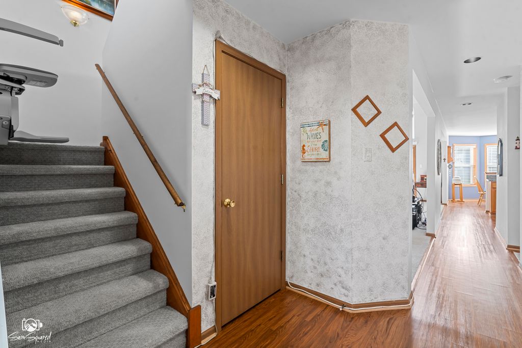 What a gorgeous setting for this wonderfully maintained townhome! Step inside to see all this home has to offer. Foyer with powder room for your guests, soaring ceilings and windows in the family room provide lots of natural light, gas fireplace for those chilly nights, open to kitchen with room for table and stools at the counter. Deck overlooks this gorgeous yard with trees and privacy fencing between neighbors. Upstairs 2 large bedrooms with full shared bath and open hallway overlooking the family room. Full basement with newer sump and battery back up system, ready to finish or keep for storage. Roof 2014, furnace and a/c 13-14'. One car attached garage completes this lovely unit! Chair lift can stay or be removed for your convenience. Home is truly move in ready!
