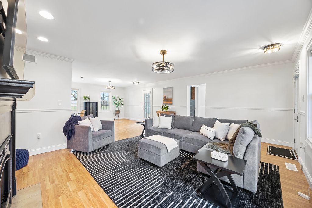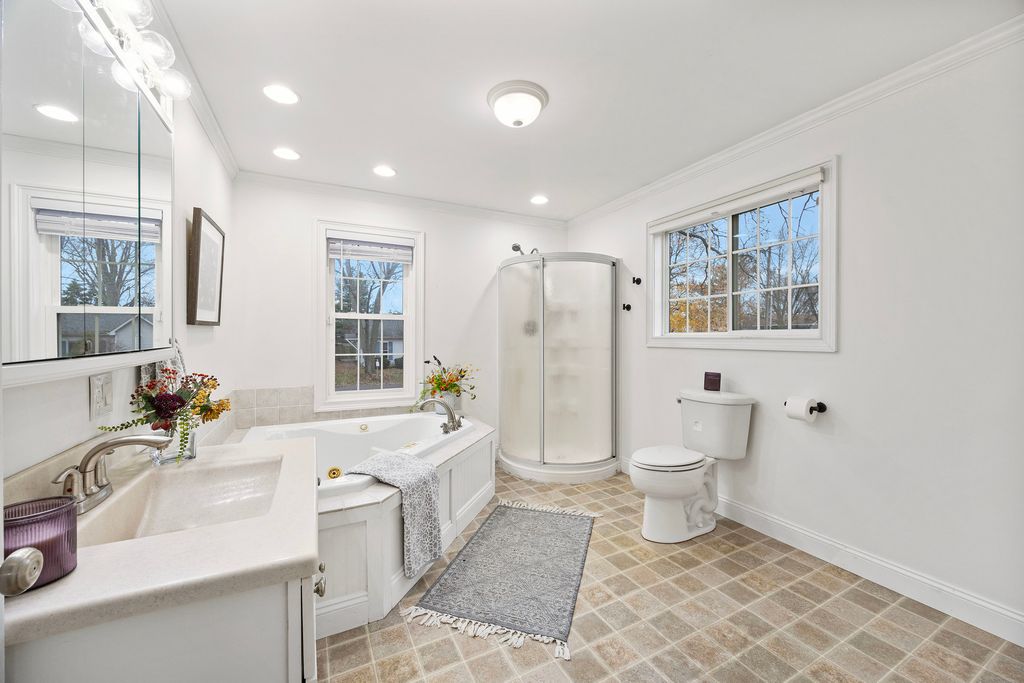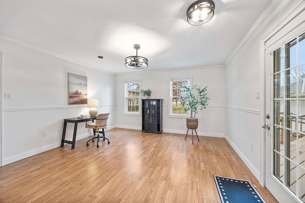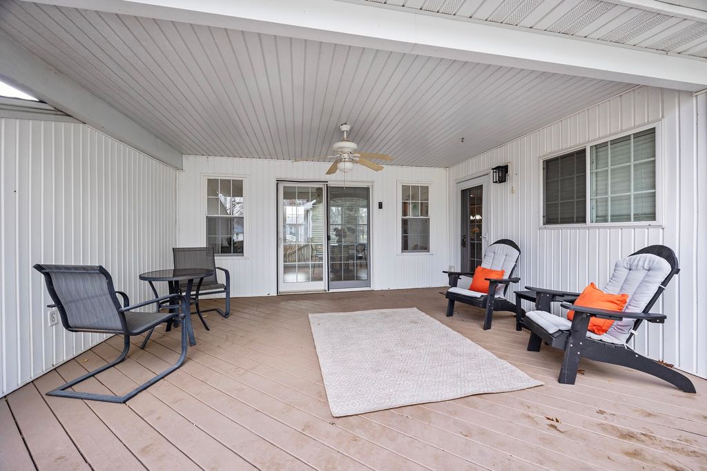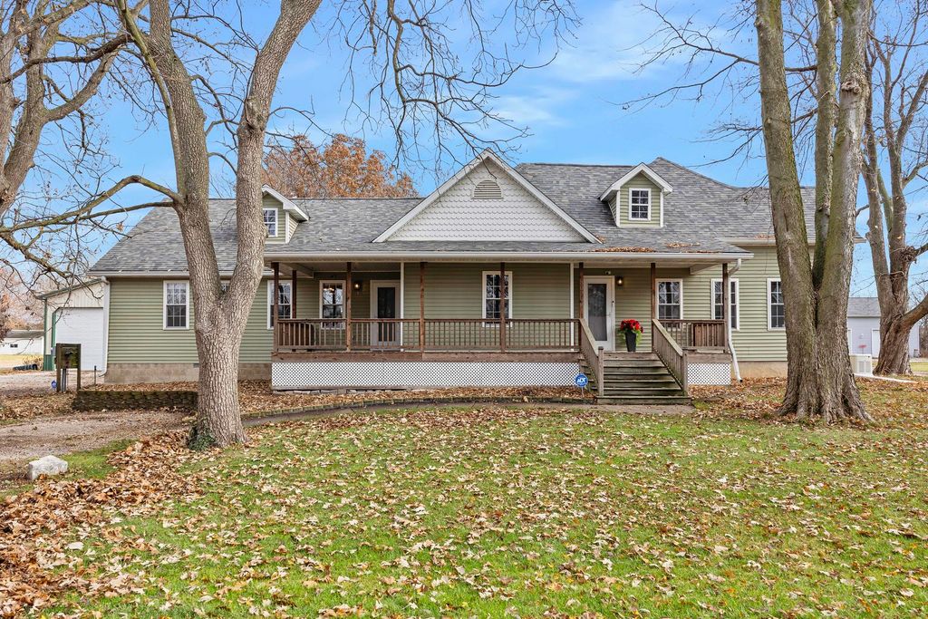 One level living at it's finest. Set on just over an acre on the edge of town, this fully remodeled ranch home has a unique, well-designed layout, freshly painted walls, and easy to clean laminate floors throughout. It has a bright, open kitchen with lots of cabinet space and an adjacent sunroom off the attached 2 car garage. Main level laundry, pantry, and plenty of extra square footage for customizing the layout. Outside, you'll enjoy the beautiful views, mature trees, large yard, and a gorgeous protected deck. The 1500 square foot heated machine shed has one extra tall door plus another standard size door, and a work room and additional loft area for storage. Full remodel in 2010. Roof in 2024. Outbuilding 2008. HVAC 2023. Foundation updates 2025. Light fixtures 2025.