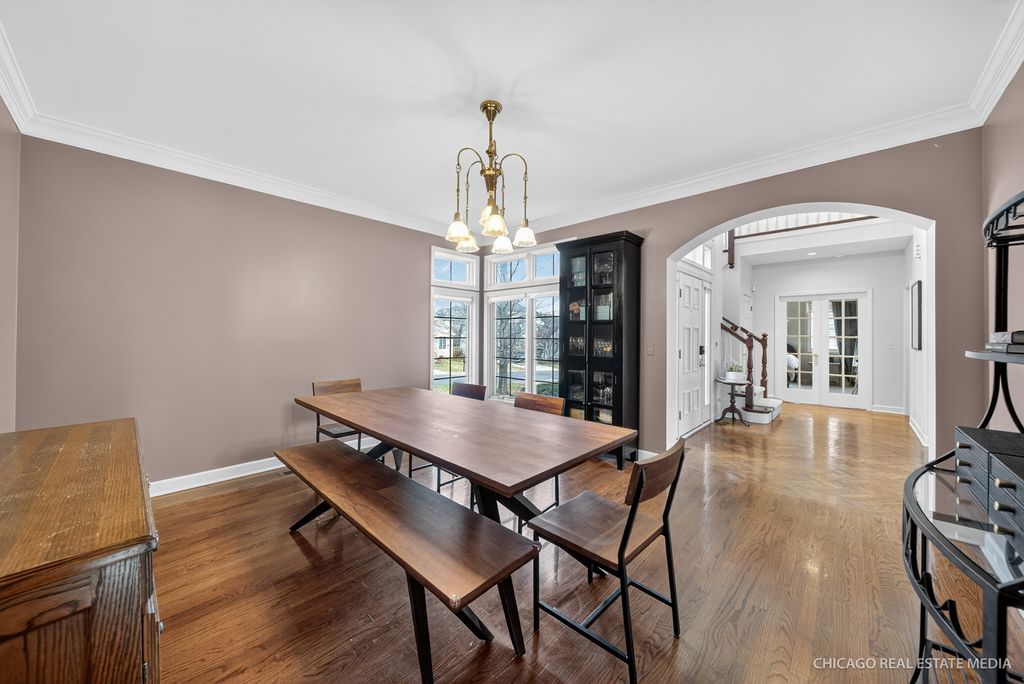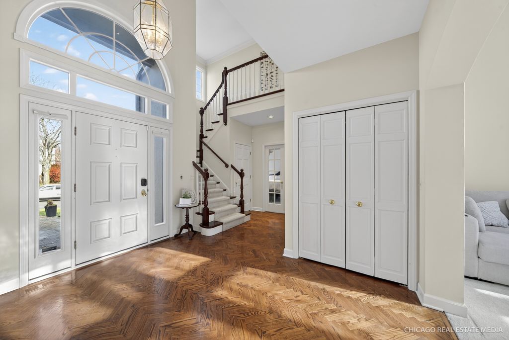 A beautifully crafted paver and stone walkway welcomes you to this elegant residence in the Clubhomes of Windhill. Expertly maintained and thoughtfully updated, the home blends timeless architectural details with modern comforts, featuring soaring volume ceilings, gleaming hardwood floors, and a warm, neutral palette throughout. With a first-floor primary suite, it offers the convenience and ease of ranch-style living while still providing flexible upstairs space ideal for guests, a home office, or a private retreat. The primary bedroom is a serene sanctuary, boasting a tray ceiling, dual closets, and a spa-inspired bath with separate vanities, a jetted tub, walk-in shower, and exquisite tile work. Sunlight streams through a dramatic two-story wall of windows, illuminating the living room and creating an inviting atmosphere, while the family room, anchored by a wood-burning fireplace with gas starter, becomes the perfect gathering place for cozy evenings or lively entertaining. The formal dining room, graced with crown molding, flows effortlessly to the granite, cherry, and stainless-steel kitchen, where a Viking stove and wall ovens meet a dedicated coffee and wine bar-ideal for breakfast with family, holiday dinners, or casual gatherings with friends. The kitchen now features a new Bosch dishwasher (2024), seamlessly combining style and efficiency. The recently finished (2024) English basement adds nearly 1,500 square feet of sunlit, versatile living space. Enhanced with French doors and graceful archways that echo the elegance of the main home, it includes a full basement bathroom with modern amenities, brushed gold fixtures, delicately balanced complimentary colors, and large-format tiling. Independent lighting throughout sets the perfect mood, while plush carpeting with thick padding ensures safety and comfort for family members of all ages. A separate room with roughed-in water hookups allows for relocating the laundry from the upstairs mudroom or expanding pantry storage. Independent furnace and AC systems provide year-round comfort, complemented by an electric fireplace with 220v heating capabilities. Ample crawl space and utility storage, along with insulated walls and ceilings, ensure privacy, quiet, and peace throughout the space. Step outside to enjoy a newly completed (2023) deck with added concrete base, stairs, and extra storage underneath-perfect for morning coffee, summer barbecues, or evening cocktails while taking in serene outdoor views. The leveled front walkway (2025), newly painted entire exterior (2025), updated exterior lighting (2025), new gutters (2024), and newly constructed retention walls (2023) enhance both beauty and functionality, completing the home's flawless curb appeal. And a brand new roof (2024). The $225/month HOA fee covers professional landscaping, lawn maintenance, snow removal for both walkway and driveway, and a sprinkler system-allowing you to fully enjoy the meticulously maintained grounds. Ideally located near Harper College with quick access to the expressway, shopping, and dining, this residence offers both convenience and a refined lifestyle. A meticulously maintained and thoughtfully updated home, perfectly balancing timeless design, modern amenities, and luxurious livability-ready to welcome its next owners and their cherished memories.