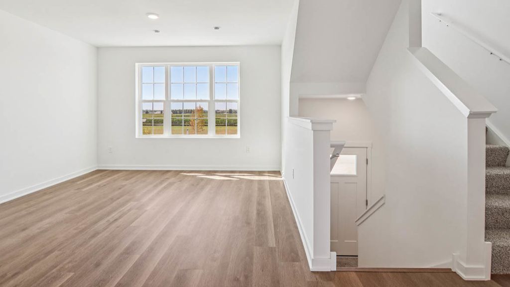 Welcome home to 6510 Linden Trail - Unit E, a beautiful end-unit Garfield townhome for sale in Wonder Lake's Stonewater community. This home offers the ease of a fully sodded and landscaped yard with year-round maintenance and winter snow removal. With 1,758 sq. ft. of living space, this home features 3 bedrooms, 2.5 baths, and a finishedf room. From the two-car garage, step into your versatile flex space. Just perfect for a home office, playroom, or cozy den. Upstairs, the main level invites you into an open-concept layout designed for gatherings and everyday living. The expansive kitchen flows into the dining and great room areas, and the private balcony is the perfect spot for morning coffee or evening relaxation. Designer cabinetry, soft-close drawers, quartz countertops, a spacious island, and pantry bring both style and function to the kitchen. Upstairs, retreat to your private primary suite complete with walk-in closet and spa-like bath featuring dual quartz vanities. Two additional bedrooms, a full bath, laundry, and linen closet round out the second floor. Luxury vinyl plank flooring throughout the kitchen, baths, and laundry adds durability and style. Energy-efficient features include an ERV furnace system and tankless water heater. Every Chicago home comes equipped with America's Smart Home Technology. Photos are of similar home and model home. Actual home built may vary.