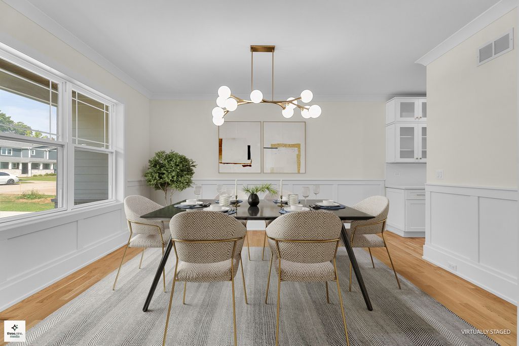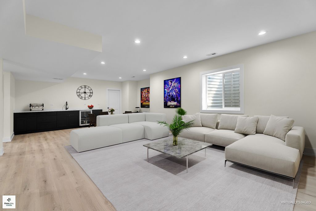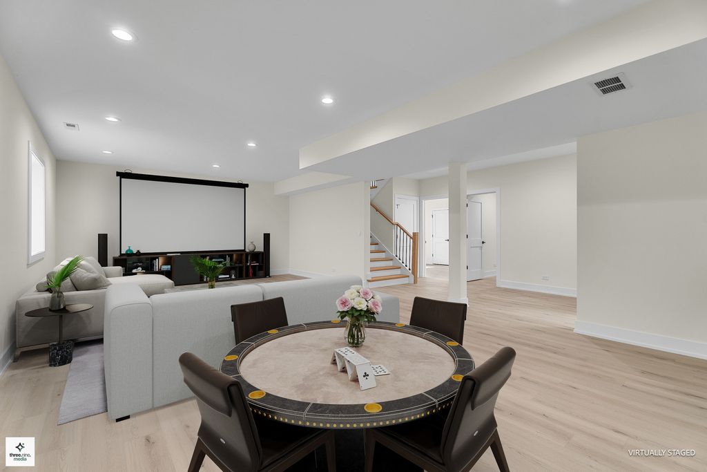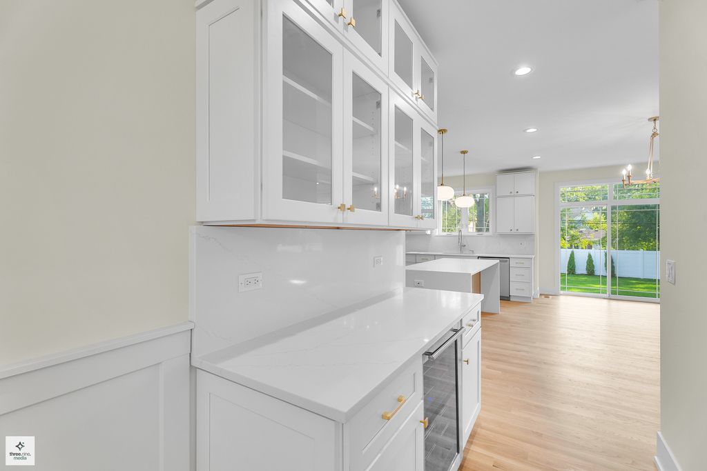 Welcome home! Step into sophistication with this stunning 5-bedroom, 4.5-bath residence, thoughtfully designed to combine modern elegance with everyday comfort. From the moment you enter, you'll be impressed by the open, airy layout enhanced by white oak hardwood flooring throughout the main level. To your left, a formal dining area with an eye-catching chandelier connects seamlessly to the gourmet kitchen through a stylish butler's pantry, complete with a wine refrigerator. The chef's kitchen is outfitted with custom cabinetry, quartz waterfall island, and top-of-the-line Thermador appliances, including a range-top, double ovens, and more. A large walk-in pantry sits just behind the kitchen. The kitchen flows effortlessly into a bright family room centered around a sleek gas fireplace. Sliding glass doors extend the living space outdoors to a beautifully landscaped and fenced backyard, perfect for relaxing or entertaining. An office is conveniently located near the front entrance. The second floor offers four bedrooms, including a luxurious primary suite with vaulted ceilings, spa-like bath with dual vanities, freestanding tub, and a nice size shower. A huge walk-in closet is conveniently accessible from the bathroom. The second bedroom includes a private bath, while bedrooms three and four are joined by a Jack-and-Jill bathroom. A laundry room is also located on the second floor for added convenience. The fully finished basement expands the living space with a stylish wet bar, an additional bedroom, a full bathroom, and a flexible bonus room ideal for a gym or office. This home combines thoughtful design, high-end finishes, and exceptional craftsmanship, offering the perfect blend of comfort and elegance. Situated only minutes from highly regarded Glenview schools, neighborhood parks such as Crowley and Flick, several golf courses, shopping, dining, and convenient expressway access, this home offers the perfect balance of style, practicality, and location. Discover the finest of Glenview living!