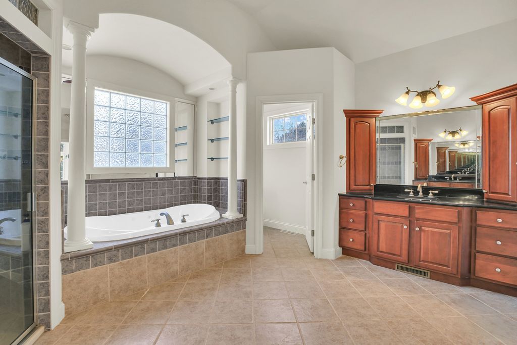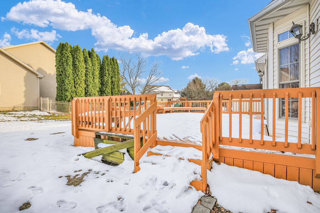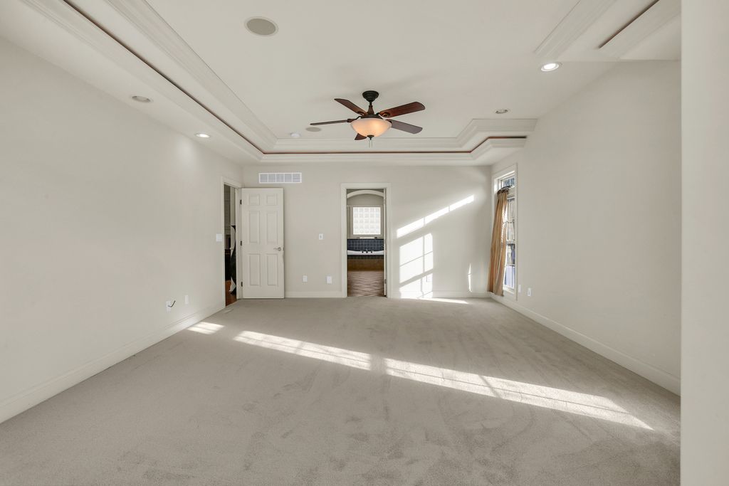 Welcome to this extraordinary 6-bedroom, 4 bath masterpiece, a 2003 Showcase Home built by the renowned Unique Homes. Perfectly positioned on an impressive corner lot, this residence combines timeless architecture with exceptional craftsmanship, offering a lifestyle of distinction and elegance. The striking red brick and castle-stone facade presents a stately presence, setting the tone for the refined luxury that awaits inside. Upon entering, you are greeted by a dramatic two-story foyer adorned with rich cherry hardwood floors and a gracefully crafted cherry staircase that immediately captures the eye. The entire first floor has been freshly painted, creating a bright, updated, and welcoming atmosphere. The expansive first-floor master suite is a serene private retreat, featuring new carpet, an oversized whirlpool tub, separate vanities, and his-and-her walk-in closets. Sunlight fills the spacious great room, enhancing the warm and inviting ambiance that makes this home ideal for both everyday living and grand entertaining. The gourmet eat-in kitchen is designed to impress, showcasing a sprawling breakfast nook with direct access to a large deck, perfect for outdoor dining, gatherings, and year-round entertaining. Premium cherry cabinetry, abundant counter space, and thoughtful layout make this a true chef's delight. Throughout the home, comfort meets functionality. The property includes central vacuum, lots of storage, and a three-car garage with newer doors, ensuring convenience and efficiency. With a total of six well-appointed bedrooms, the home offers exceptional flexibility. A smaller lower-level bedroom is ideal as a nanny's suite, private guest quarters, or a dedicated home office. The partially finished basement is an entertainer's paradise-featuring new carpet on the stairs and throughout the basement, a spacious family room with a custom wet bar, a full bathroom, and a sound-proof theater room perfect for movie nights and immersive entertainment. Additional recent upgrades include a new HVAC system installed in summer 2025, providing year-round comfort and peace of mind. From its commanding corner-lot presence to the luxurious interior features and modern updates, this residence is truly one of a kind-a home that embodies style, presence, comfort, and timeless elegance.