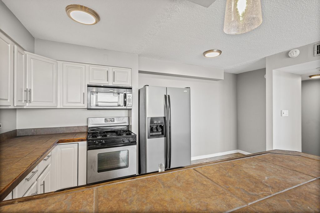 Bright, updated 1BR/1BA high-floor condo with amazing views! Open layout, modern kitchen with stainless steel appliances + breakfast bar, built-in desk for WFH, and large windows with tons of natural light. Fresh paint, new lighting, and new window treatments. Same-floor laundry and extra storage. Full-amenity building: pool, sundeck, penthouse party room, secure entry, onsite management. Steps to dining, groceries, and transit. Garage parking included. Assessments cover almost everything, except electric. Vacant, easy to show. Motivated seller, bring an offer! HOA imposes a rental Cap.