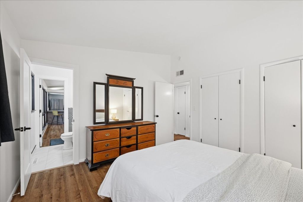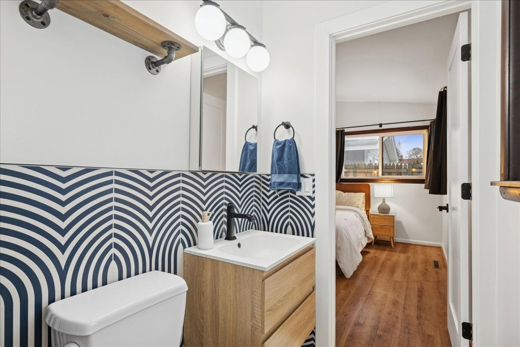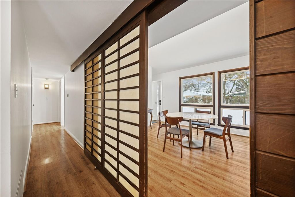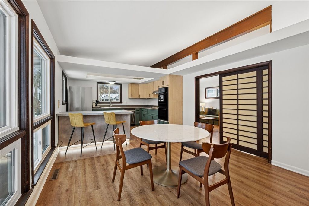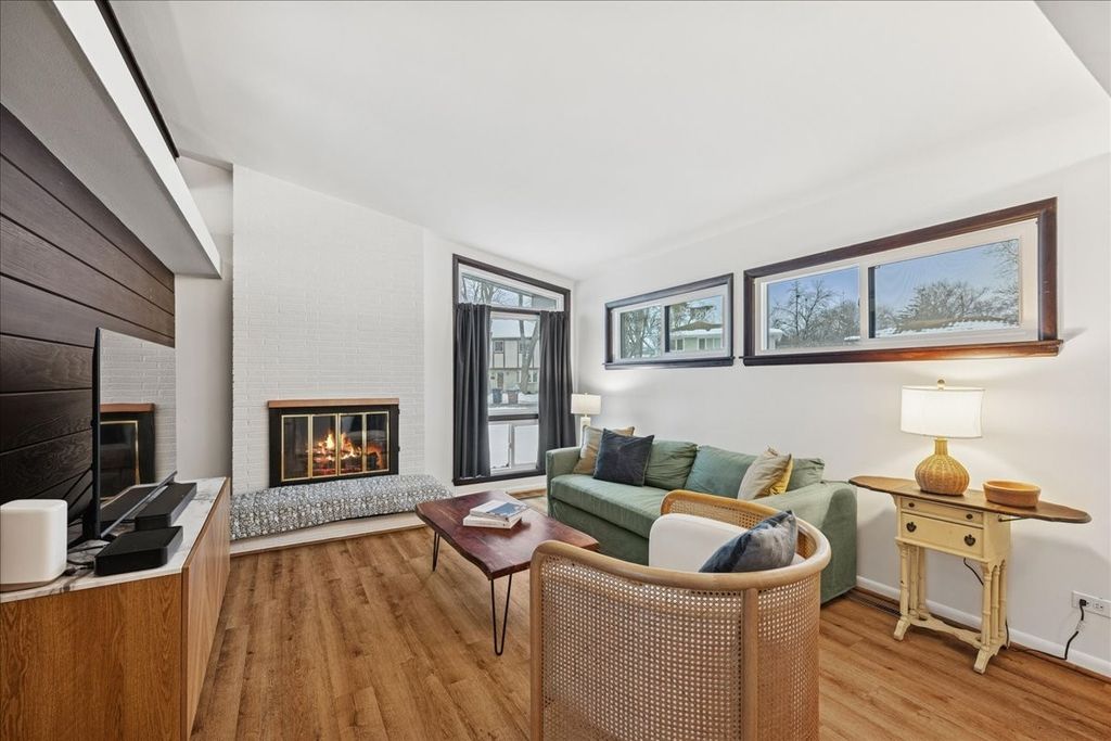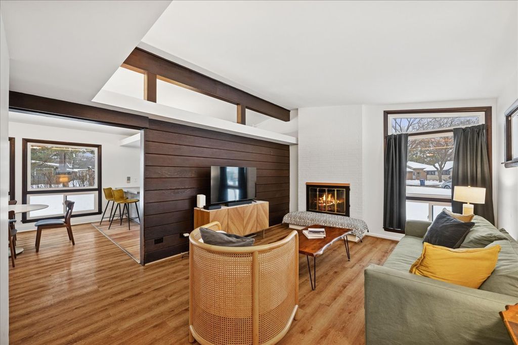 Updated Mid-Century Modern home with so many updates you won't believe it! The design of this 3 bedroom ranch home captivates you with its' timeless style. The vaulted ceilings, exposed beams & walls, wood accent wall and sliding screen door all define mid-century modern design! The front entry opens up into the inviting living room with a brick fireplace to enjoy cozy evenings. The living room flows seamlessly into the kitchen/dining combo that has been updated with stylish cabinetry, gas cooktop, and new sink and Kohler faucet. The refrigerator and dishwasher(1/2024) have been replaced for your ease and convenience. You'll enjoy the view to the backyard with a fence, patio and a new exterior door to access the space. Check out the main floor bathroom that was rehabbed in 2023 with a stylish walk-in shower with white subway tile and a geometric floor tile, new vanity and Kohler bath fixtures. Next you'll find the primary bedroom with an updated half bath with cool navy and white tile with a new vanity, fixtures, and toilet!! The exterior of the home has been redone with classic white siding, new fascia, soffits, gutters and a new roof installed in 2023!! Also, new windows were replaced throughout the home with a transferrable warranty. New exterior doors have been installed on the front, back, and garage door for your aesthetics and security. A full unfinished basement has been waterproofed with a transferrable warranty, a sump pump with a backup battery, an upgraded electrical panel, and a new washer and dryer. You can almost double the size of this home when you design your dream basement! This home is move in ready and waiting for you to move in and start living your best life!!