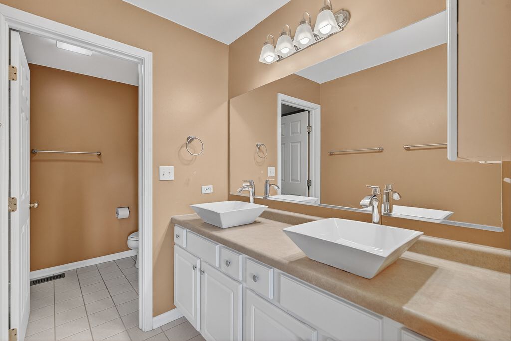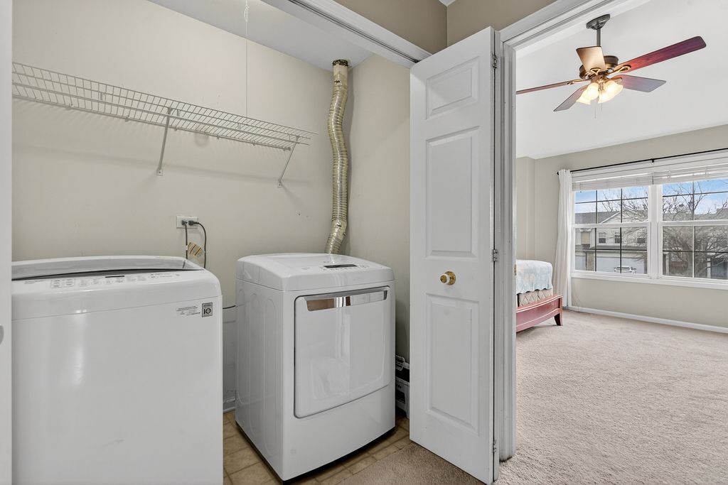 Beautifully updated and move-in ready 2-bed, 2.5-bath townhome with 1,534 sq ft of comfortable living space! The main level features modern wood-laminate flooring throughout, a bright and open living/dining area, and a well-appointed kitchen with stainless steel appliances. A sliding glass door off the dining room leads to a private outdoor living area-perfect for relaxing or entertaining. The main level also includes a versatile den/office along with a convenient half bath. Upstairs, you'll find two spacious carpeted bedrooms, each with its own full bath. The large primary suite offers excellent closet space and a private en-suite. A second-floor laundry room adds everyday convenience. Fantastic Roselle location close to parks, shopping, restaurants, and transportation. A wonderful opportunity to own a spacious, modern, and well-maintained home-don't miss it!