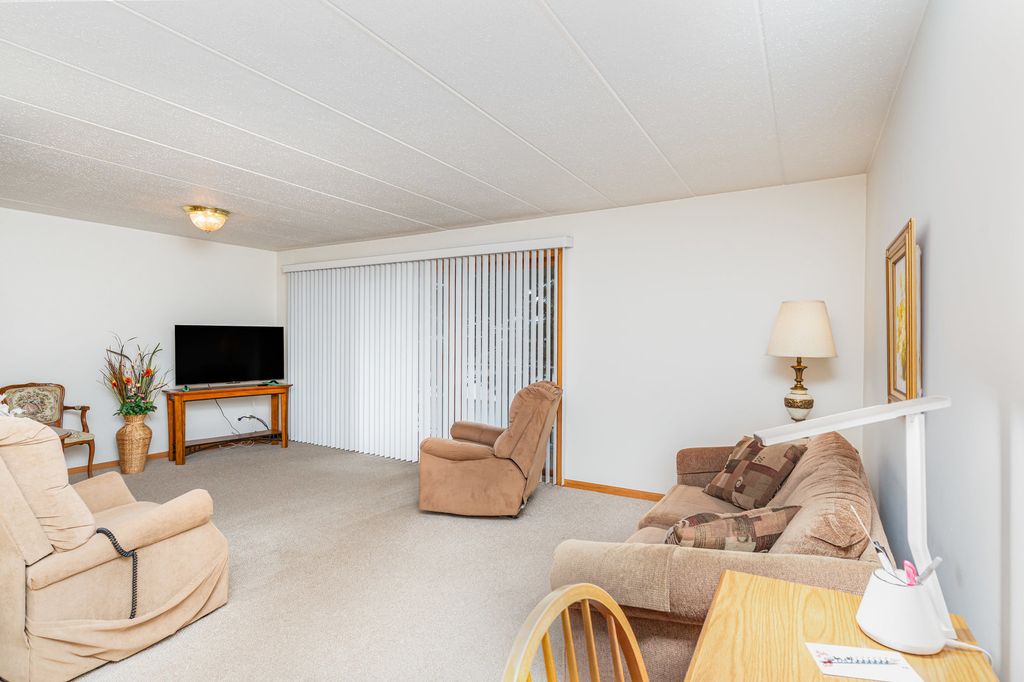 Spacious & Bright 2 Bedroom 2 full bath Condo with Southern Exposure in this 55+ Community is ready for you to just move right in. There is an Elevator in the building for easier access. The Kitchen has a Nice Eating Area and All of the Appliances Stay. The Primary Bedroom has 2 Closets and a Full Bathroom with a Step In Shower. The Home also has a Large Storage Closet in the unit. The second Bedroom also has a Walk In Closet so there is plenty of Storage here. The Furnace and Air Conditioning are less than 2 years old. There is also a nice Balcony and a Detached Garage. There is a good sized Laundry Room with a New Washer and a Sink. The HOA Fees include Water and Garbage as well. The building is Flexi-Core Construction for a nice quiet atmosphere.
