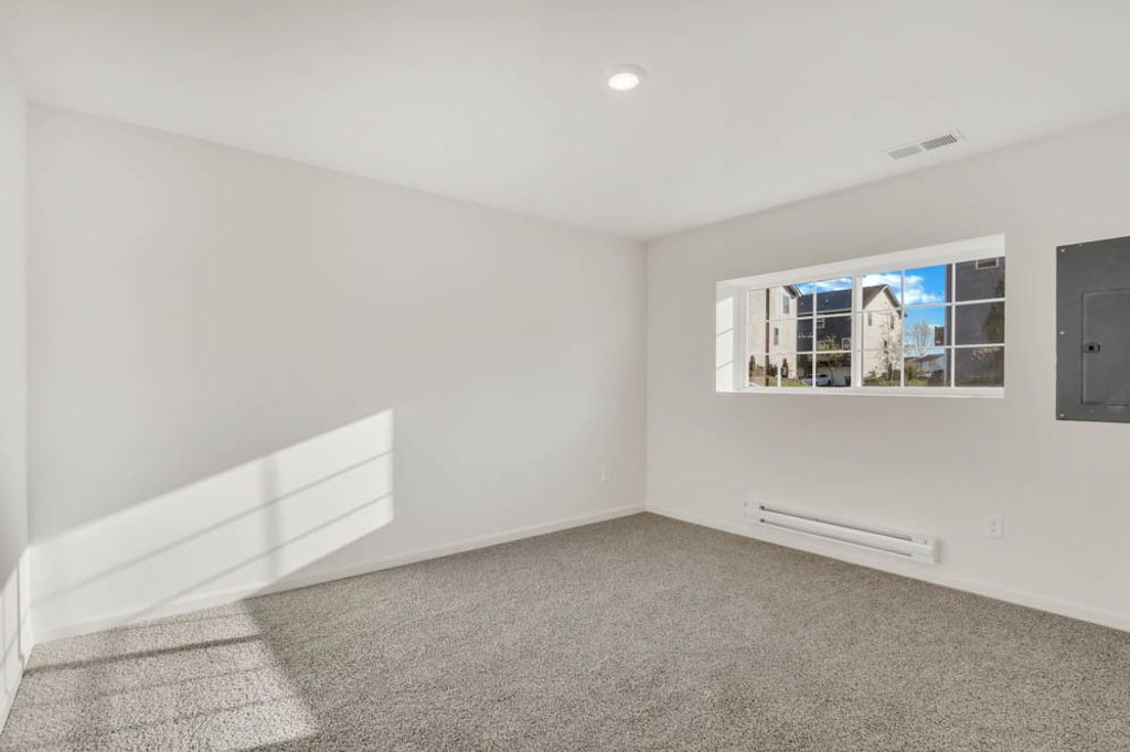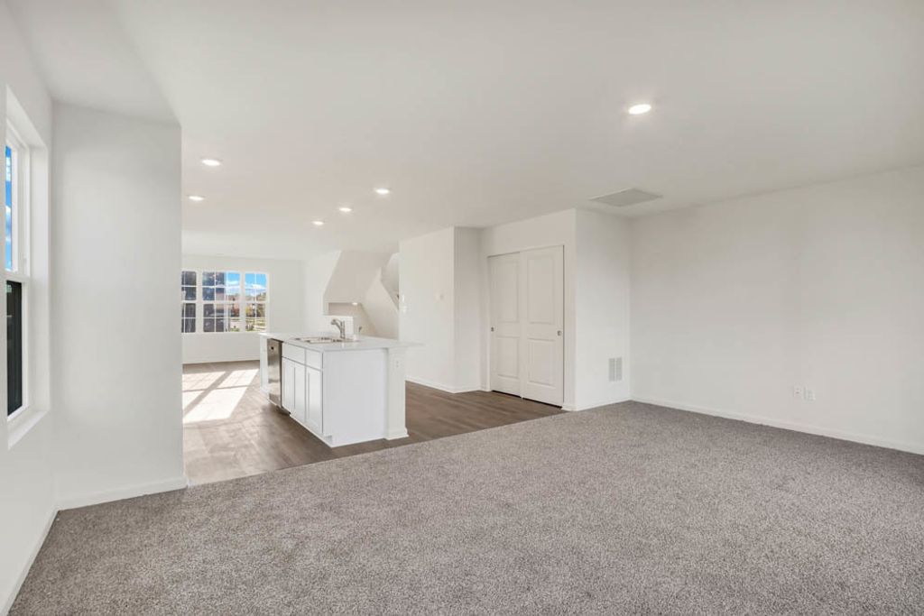 Find yourself at 6540 Linden Trail Unit F in Wonder Lake, Illinois, a beautiful new home in our Stonewater community. This home is ready for a Fall move-in! Homesite includes a fully sodded and landscaped yard that is maintained throughout the year as well as snow removal in the winter. The End-Unit Garfield Townhome plan offers 1,758 square feet of living space with 3 bedrooms, 2.5 baths and a finished flex room. As soon as you step inside from your spacious two car garage entrance, you'll be greeted by the finished flex room, which is perfect for as a den or playroom. Walking up to the main level, you will find this home's open concept living space. The expansive kitchen overlooks both the front dining and back great room areas, making it the ideal space to entertain. Step outside onto your balcony, relax and enjoy your morning coffee. Additionally, your kitchen features white designer cabinetry with soft-close doors & drawers, a spacious island with quartz countertops, and pantry. Walking upstairs, you will enjoy your private get away with your large primary bedroom on its own side of the second floor with a en suite bathroom containing a raised dual quartz vanity and walk-in closet. Enjoy the convenience of a second-floor laundry and all secondary bedrooms upstairs with a full second bath and linen closet. Luxury vinyl plank flooring throughout the kitchen, bathrooms, and laundry. Impressive innovative ERV furnace system and tankless water heater round out the amazing features this home has to offer! All Chicago homes include our America's Smart Home Technology, featuring a smart video doorbell, smart Honeywell thermostat, smart door lock, Deako smart light switches and more. Photos are of similar home and model home. Actual home built may vary.