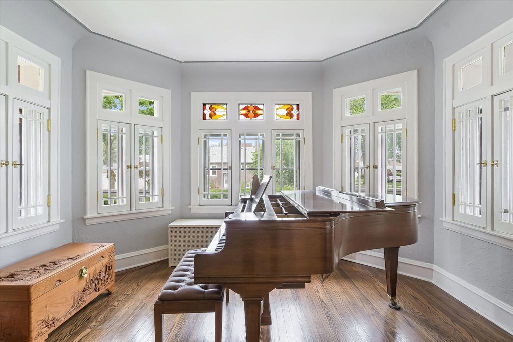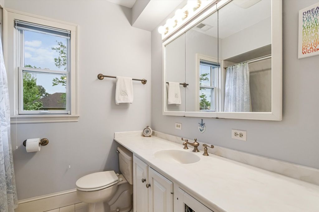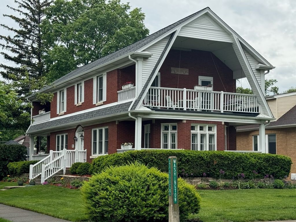Step into timeless charm and modern comfort with this stunning Dutch Colonial, perfectly perched on an oversized corner lot just blocks from Uptown Park Ridge and the Metra. This triple-brick beauty showcases classic craftsmanship paired with thoughtful updates throughout, including mostly new Pella windows. The elegant octagon living room, centered around a cozy fireplace (chimney and liner both replaced within the last five years), offers a unique and welcoming space to relax or host guests. You'll love the updated kitchen that seamlessly flows into the inviting family room and opens to a generous backyard, complete with a deck, fire pit, and underground sprinkler system - perfect for effortless maintenance and outdoor entertaining. Multiple balconies offer beautiful spaces to unwind, including a second-floor deck with a swing and access from the bedrooms. The spacious primary suite is a true retreat, featuring a private bath and direct outdoor access to a balcony. There's also second-floor laundry. The basement adds exceptional flexibility for a rec room, gym, or guest space, and includes an additional washer and dryer, and a freezer. Ample storage can be found throughout the home, including in the attic of the detached two car garage accessible from the alley. With an updated kitchen and bathrooms, plus recent improvements like the roof, gutters, and windows, this home is completely move-in ready. Classic style, unbeatable location, and everyday comfort - all in one.