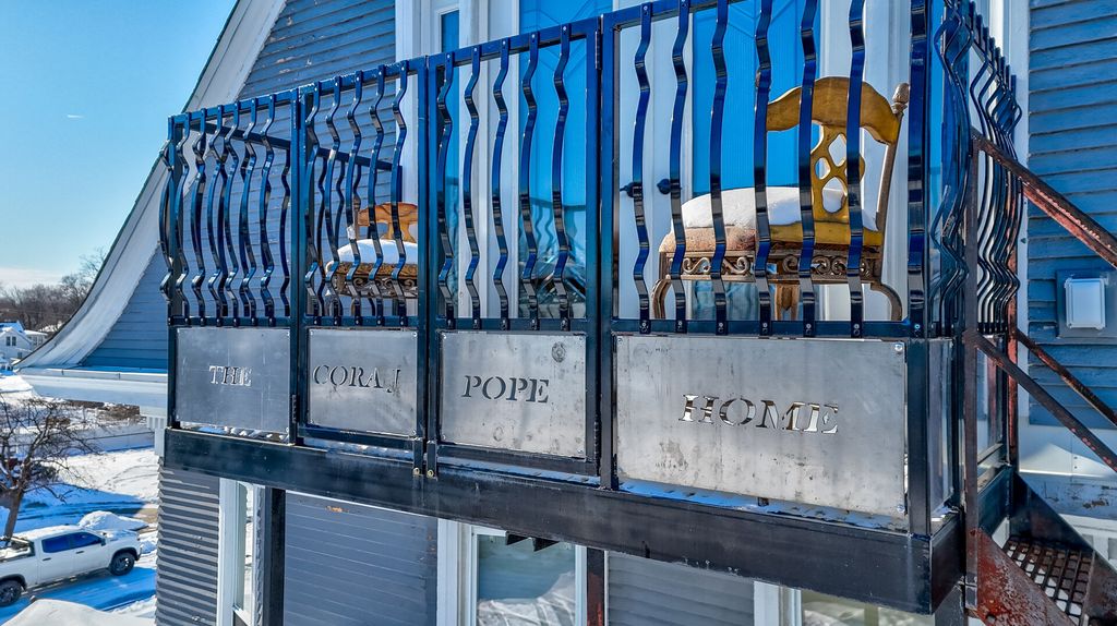 Welcome to the Cora J. Pope Home, one of Ottawa's most recognizable historic landmarks and a rare opportunity for anyone seeking a luxury Airbnb, boutique inn, or bed-and-breakfast property. Built in 1902 by Milton and Cora Pickens Pope, this Victorian masterpiece has been lovingly restored to its original grandeur while thoughtfully updated for modern comfort. Perched on a scenic bluff overlooking downtown Ottawa and the Illinois River, the home immediately impresses with its stately exterior, welcoming porch, decks and balconies, and intricate architectural details that have welcomed guests for more than a century. Inside, the grand foyer sets the tone with elegant woodwork and a hearth room featuring a fireplace, a stunning staircase, and warm gathering space. The adjacent full bathroom with a garden tub sits conveniently beneath the stairs. Off the hearth room you'll find a large formal parlor with space to relax, entertain, or simply enjoy the ambiance of a home with deep local roots; an elevator provides additional convenience. The family room offers another cozy retreat with a second fireplace, built-ins, and a turret-style sitting nook perfectly positioned for river views. The formal dining room is a showstopper with beamed ceilings, wainscoting, built-in china cabinet, and a fireplace, creating a timeless atmosphere for gatherings of any size. A kitchenette or butler's pantry with original cabinetry and leathered granite connects to the main kitchen, which blends modern stainless steel appliances with custom cabinetry designed to match the home's historic character. The main level also includes a bedroom currently used as an office, a full bathroom, and three additional flex rooms currently used as a gathering room, family room, and gift shop, offering excellent layout options for guest suites or business use. Upstairs, the expansive landing showcases leaded glass windows with sweeping river views and leads to four bedrooms, each full of character. Cora's room features birds-eye maple woodwork, a fireplace, and an en-suite bathroom with a stunning soaking tub and separate water closet. Milton's room also includes an en-suite bathroom and connects to an adjoining bedroom that can remain private or linked as a suite. The Starved Rock room sits next to a historic full bathroom with original "wet-set" subway tile and soaking tub. An additional full bathroom with tub/shower rounds out the second level. The third floor continues the home's rich character with the Riverview Suite, named for its stunning views, complete with French doors opening to a private balcony and an en-suite full bathroom. The Bishop's Suite features beautiful exposed brick, a walk-in closet, an impressive bath with curved walls showcasing a soaking tub, and an attached secondary bedroom and kitchenette, making it ideal for extended-stay guests. The basement houses exceptionally well-maintained mechanical systems, including a fire-suppression system with three 100-gallon tanks, dual boilers, anti-freeze protection, two sump pumps with French drains, 400-amp electrical service with a 220 plug, laundry area with egress window, and a convenient half bathroom. The elevator has been fully updated to current standards with new mechanical lines. Also on the property, sits a separate ranch home, currently rented. This property is a striking blend of history, luxury, and opportunity, offering an unmatched layout for short-term rental hosting, multi-suite accommodations, events, or a dream owner-occupied business. With its rich history, breathtaking views, restored architectural integrity, and modern updates, the Cora J. Pope Home stands ready for its next chapter. Don't miss the chance to own and operate a truly remarkable piece of Ottawa's heritage.
