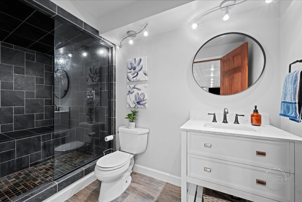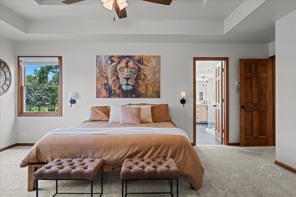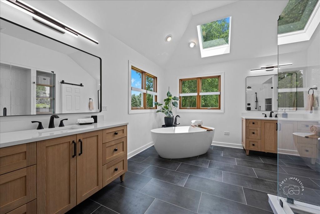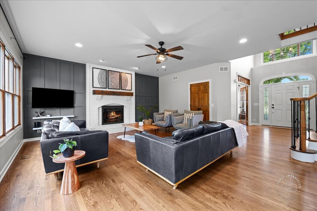 Beautifully updated home on 1.4 private acres with mature trees and outdoor spaces designed for enjoyment. 4342 square feet of finished living space!!! Extensive improvements over the last several years. Exterior updates include board replacement, stain, and trim paint (May 2024). New roof, skylights, and gutters (October 2023). Gorgeous primary bath remodel with new finishes (March 2024), Basement bath remodel with new glass shower door (December 2023). Shared upstairs bath remodel (November 2023). Hardwood floors throughout the main level (May 2022) and new carpet on the second floor (August 2019). Fresh interior paint, light fixtures, and ceiling fans (September 2019). Outdoor features include a stone fire pit and surround (May 2020), an in-ground basketball hoop and painted court (April 2022). Water heater (installed in December 2021) and heated garage (installed in November 2019). Updated hardware on doors and cabinets (August 2022). Move-in ready with space to relax, entertain, and enjoy the outdoors. Like hiking, walking, and nature--then you will love that the Great Western Trail extends from LeRoy Oaks to Grey Willows Farm---this home backs to the 208 acre parklike area with 10 hiking trails. Enjoy the beauty and serenity of the ever-changing vistas! Very versatile property, as NO HOA---County covenants! Great value for one-of-a-kind custom residence!