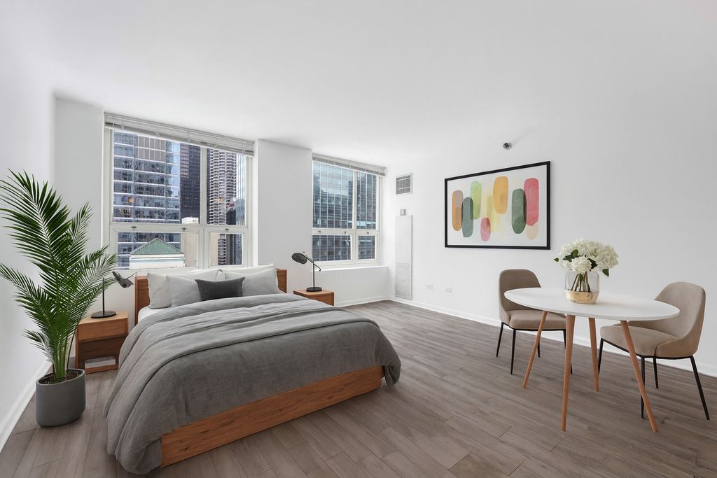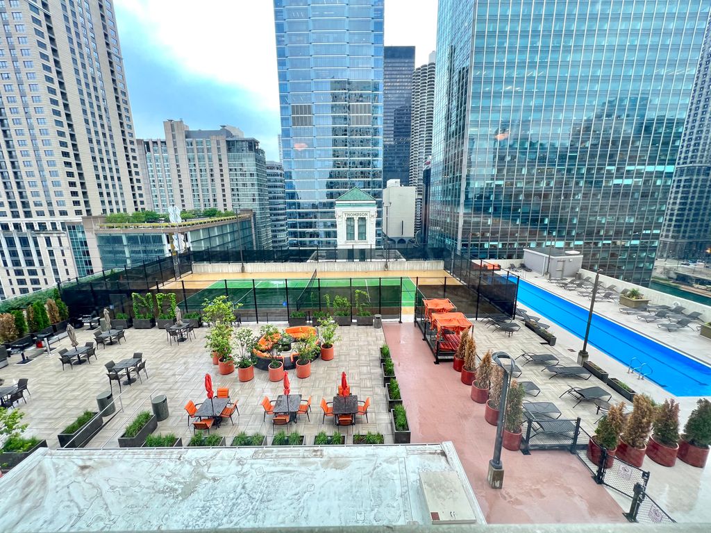 Attention investors and owner-occupants-this building has NO rental cap! Welcome to 345 N. LaSalle Dr., Unit 1804, a sun-filled east-facing studio with stunning city, river, and amenity views. Monthly assessments include everything except electricity-covering heat, A/C, basic cable/internet, water, and trash. The unit has been freshly painted and features flooring throughout, in-unit laundry, and generous closet space. The full kitchen includes a stove, microwave, garbage disposal, dishwasher, and a breakfast bar. This full-amenity building offers a dog run, outdoor pool, two fitness rooms, sundeck, and tennis court-all located on the 14th floor. Unbeatable location in the heart of River North, just steps from the Magnificent Mile, top restaurants, shopping, and public transportation. The sale includes one storage unit (#318, Room 304 on the 3rd floor). Rental parking is available in the attached garage. Bike room available. Pet-friendly building. $3M in reserves, no special assessment planned.