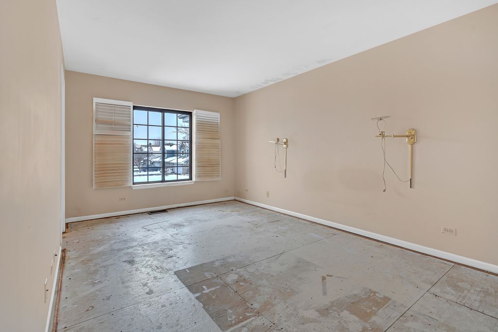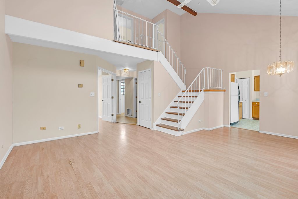 Rare chance to buy a fixer upper in Wood dale and remodel it just the way you want. This spacious 3-bedroom 2.5 bath townhome is close to everything: O'Hare airport, restaurants, shopping, parks and forest preserves. This townhome has a great floor plan with a half bath, laundry, and bedroom on the first floor. The large living room and dining room have vaulted ceilings, a two-story fireplace and large windows and sliding door leading to an open outdoor space. The kitchen has room for a table and is conveniently located off of the one car garage. The upstairs has two full bathrooms and two large bedrooms with spacious walk-in closets. This home needs updating and is being sold AS IS
