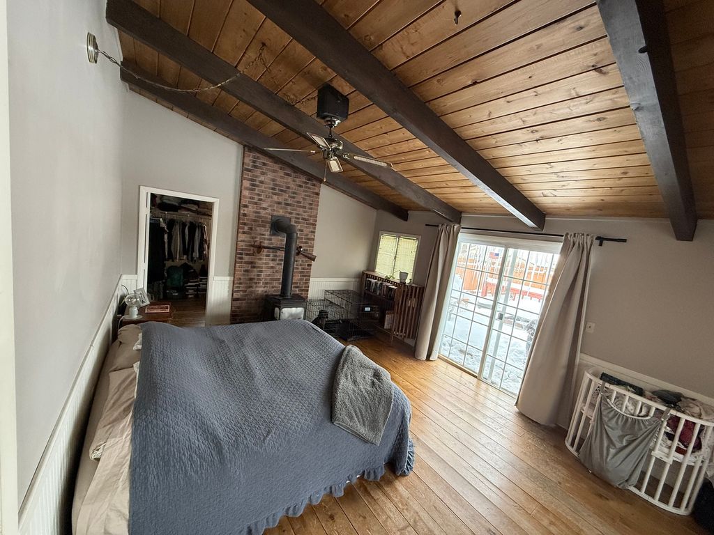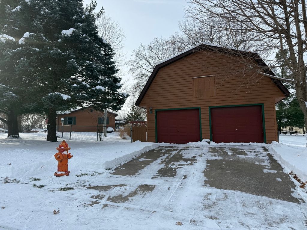 Discover the charm and space of this ranch home set on nearly a half-acre double city lot. Enjoy an attached garage plus a large barn-style outbuilding with a loft thats ideal for storage, projects, or future creative use. Inside, the main level offers warm, inviting living spaces including a living room, kitchen, dining room, two bedrooms, and a spacious family-room addition. A cozy den with a wood-burning stove and sliding door to the deck is currently used as an extra bedroom. The finished lower level adds even more flexibility with a family room, bedroom, kitchenette, bath, and storage. Interior highlights include wood floors, bay window and wood ceiling accents throughout. Outdoor living shines with front and rear decks, mature trees, and plenty of room to relax or entertain. Located in a quiet subdivision. Mechanical updates include furnace (est. 2017) and water heater (est. 2022). Sellers are completing final touches. Sale contingent on sellers securing their next home.