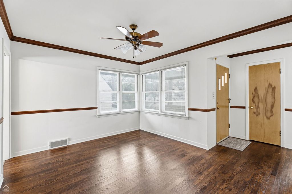 What a cutie! You'll love coming home to this true mid-century ranch! It needs some work, but look at the huge rooms and gorgeous hardwood floors! You'll fall for it! Direct access from the garage to the kitchen makes bringing in groceries super convenient AND you'll stay warm! There are plenty of cabinets in the kitchen and even a pantry! The living room is large with a great picture window to let in the light and a wood burning fireplace to keep you cozy in the winters. A nice dining room is just right. The spacious bedrooms will surprise you! The basement is big and clean and mostly empty! What a great canvas to do with as you want! This great home is sitting on an extra large in-town lot that's mostly fenced! You'll be close to schools, downtown, Route 14 shopping, the Raue and Metra! Don't miss this one! The water isn't working in the shower/tub. Roof replaced about 2012-2014. New furnace 2018, Siding stained 2023. Sold as is.