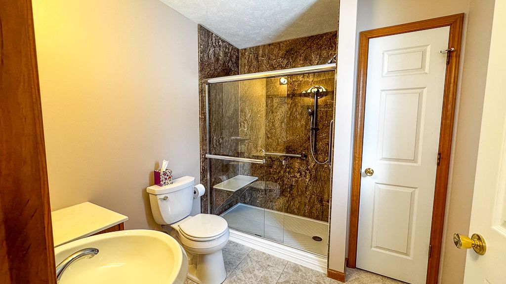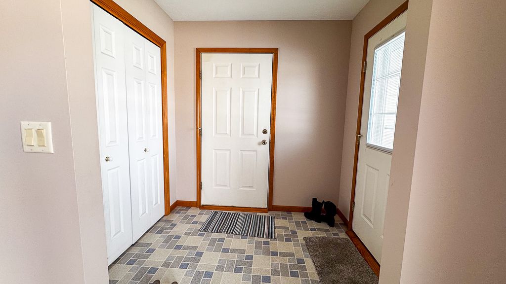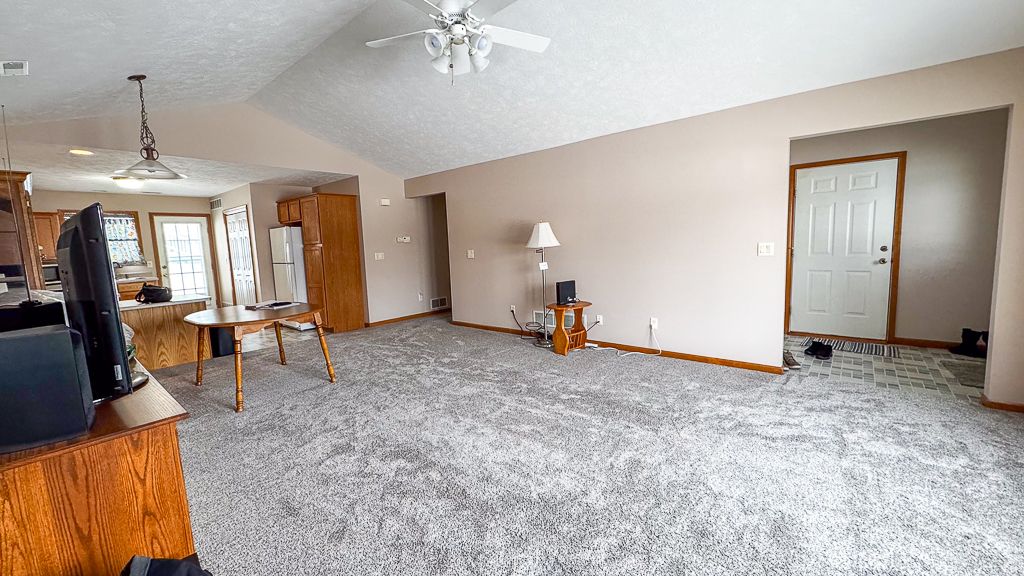 Charming Pristine Ranch Condo in The Crosswinds! This meticulously maintained 2-bedroom, 2-bathroom ranch condo, offers the perfect blend of comfort, convenience, and style. The home features a spacious, open living area with extra-tall vaulted ceilings, creating a light and airy atmosphere. Enjoy newer carpet, fresh interior paint (2021), and a brand-new walk-in shower in the master bath. The large kitchen offers plenty of counter space and storage, ideal for home chefs and entertainers alike. Both bedrooms come complete with walk-in closets, providing ample storage, while a private patio off the kitchen is perfect for relaxing or enjoying meals outdoors. The oversized 2-car garage includes a workbench and built-in cabinets for added functionality. Recent updates include a new roof (2019) for peace of mind. The condo is also handicap accessible and offers one-floor living for easy accessibility. The monthly association fee covers mowing, landscaping, exterior maintenance, and snow removal, making this an ideal low-maintenance home. Located in a highly desirable, central location, you'll be just minutes from Constitution Trail, shopping, and dining options. This home offers the ultimate in convenience and comfort-don't miss out on this incredible opportunity!