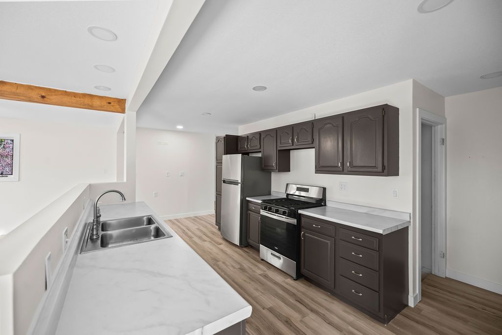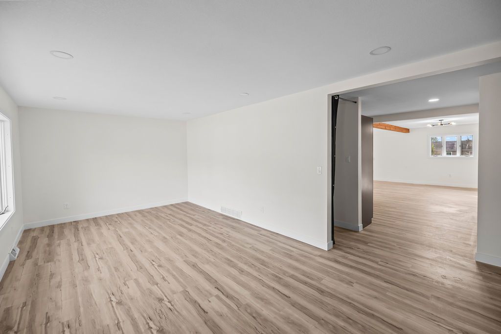 This stunning South Shores residence has been completely remodeled from top to bottom and is truly move-in ready. Enjoy all-new flooring, fresh paint, modern lighting, a fully updated kitchen with new appliances, and a beautifully renovated bathroom. The open-concept layout features two inviting living areas and a convenient main-floor laundry. The spacious two-car garage offers new door openers and abundant storage space. The waterproofed basement adds peace of mind and additional room for storage or future living space. Step outside to a large east-facing deck overlooking the yard-perfect for relaxing or entertaining-and take advantage of the two storage sheds and brand-new landscaping that enhance this property's curb appeal.