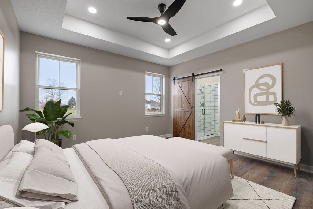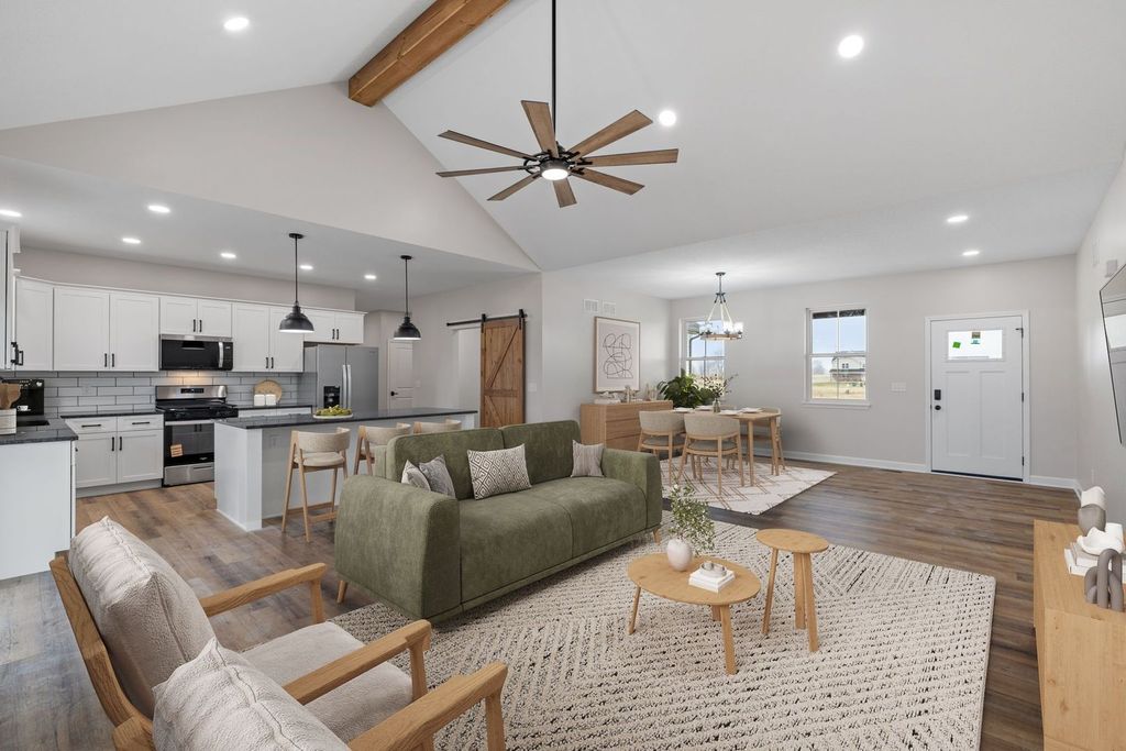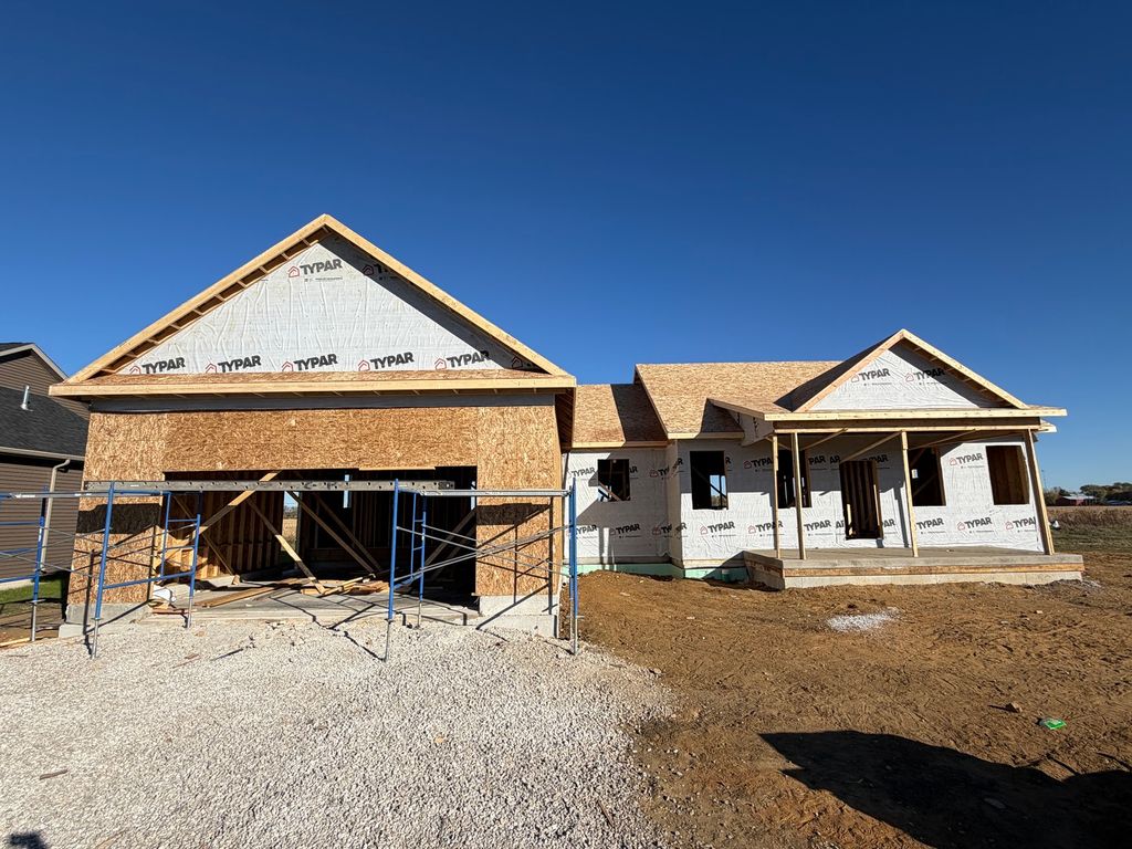 UNDER CONSTRUCTION - SEMI- CUSTOM HOMES! Welcome to the {Justin} on Lot 13 at PRAIRIE FARMS; Wilmington's newest single-family community featuring 43 new, semi-custom residences that offer stunning curb appeal, flexible living spaces, and beautiful designer finishes throughout! The modern-farmhouse design offers a beautiful front porch welcoming you & your guests. The favored open-concept floorplan features impressive, vaulted ceilings and split bedrooms. The kitchen will be finished with sleek, natural stone countertops, new stainless steel appliance package, and walk-in pantry. The adjoining Dining Room & Living Room offer ample & flexible use of the space, especially when entertaining. The rear patio will offer beautiful Easterly sunrise views of majestic farms & rolling fields, and the front porch will host stunning sunset views to the West. The guest bathroom is nestled off the hallway for privacy. The primary-bedroom suite features a walk-in closet, en-suite bathroom finished with a tiled shower, double bowl vanity, and linen closet. Two additional spacious bedrooms offer ample closet space. The hall bathroom is equipped with double bowl vanity. Main level Laundry Room. Additional home highlights include an oversized 2 Car attached garage, full basement with 2 oversized Egress Windows, roughed-in plumbing in the basement, asphalt drive, decorative light outlet within the soffit, Anderson windows, recessed lighting, and much more! Each home is thoughtfully designed and proudly built to become a beautiful, energy-efficient, and serene living space that can be customized for various lifestyles and entertainment needs. Homes are equipped with energy efficient building materials, modern appliances, and smart home synchronizing capabilities for the homeowner's comfort and convenience. 2.5 Car Garage. Digital rendering and floor plan is used for concept purposes only, actual feather, plans and pricing will very. **Phenomenal Buyer Incentives! Inquire for more details!** Estimated occupancy date is March 2026.