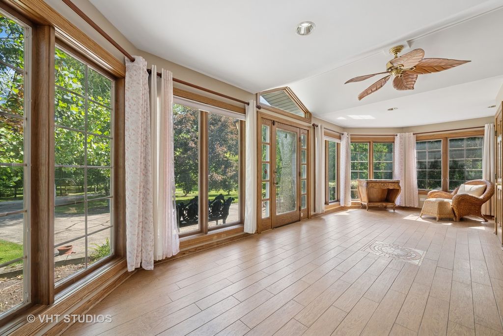 A rare opportunity to own 20+ prime acres in sought-after Barrington Hills! This exceptional 9,000+ sq ft estate offers resort-style living with an incredible indoor pool, expansive living areas, and a separate log-cabin-style guest house-all set amidst serene countryside. The main residence features 5 bedrooms and 7 full baths, including a convenient main-floor suite with ensuite bath, ideal for one-level living. The dramatic great room is a showstopper with soaring tongue-and-groove vaulted ceilings and a striking floor-to-ceiling, four-sided stone fireplace. An adjacent family room with sliders to the patio creates a seamless flow for entertaining. The light-filled kitchen offers abundant cabinetry and counter space, opening to the great room and flowing into a spacious dining room with picturesque views of the backyard. A separate living room and sitting area lead to the indoor pool retreat, complete with vaulted ceilings, skylights, hot tub, slide, walls of sliding glass doors, and a spiral staircase to a second-floor bonus room. Additional highlights include a main-level sauna bath off the game room and a private second floor primary suite with French door entry, vaulted ceilings, a large walk-in closet/dressing room, and a spa-like ensuite. Upstairs, you'll find three generous secondary bedrooms-including a second primary suite-and three full baths. The property includes a barn with a stunning 3,000+ sq ft "Yellowstone-style" log cabin guest house offers 2 bedrooms, 2 full baths, an office, soaring beamed great room with floor-to-ceiling fireplace, and full kitchen-perfect for guests, extended family, or private retreats. An attached outbuilding features a two-stall barn with tack room, along with ample space for equipment and service vehicles. Garage space abounds with a 3-car attached garage and a detached 6-car garage that can accommodate up to 10 vehicles. Whether you're dreaming of a family compound, equestrian estate, or hobby farm, the possibilities here are endless. All this in the award-winning D220 school district and just minutes to charming downtown Barrington, Metra, restaurants, and shopping.