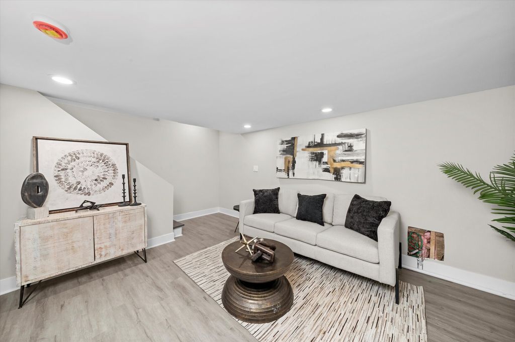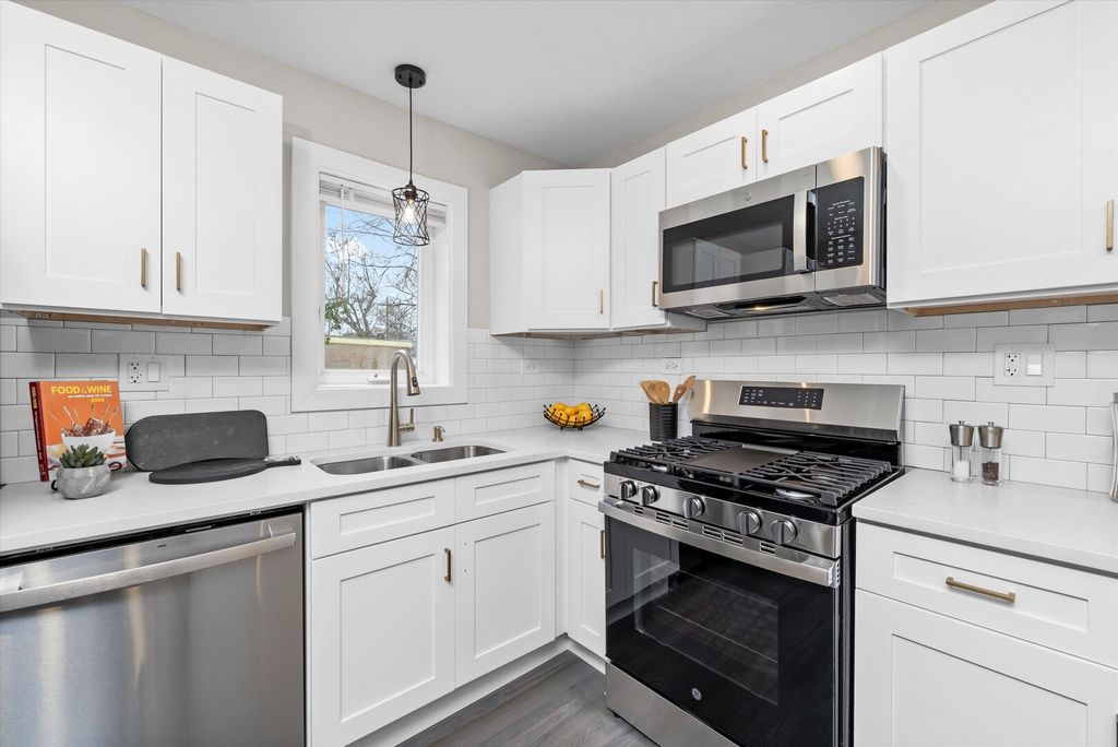 WELCOME TO 9656 CHAPPEL!. Beautiful 2 story rowhouse plus finished basement! WOW! As soon as you enter this beautifully decorated home you will be amazed by the NEW gleaming hardwood floors, big picture window bringing in a ton of natural light, the open space layout combining the living room with the kitchen with modern shaker white cabinetry, quartz countertops and NEW GE stainless steel applianaces. Upstairs you have 2 good size bedrooms and a full bath. The big bedroom with 2 closets. NEW hardwood floors. The bathroom is so nice! with modern tile work and fixtures. The basement will give you a cozy family room and yet another full bath and a finished area for your washer and dryer. New hot water heater. Newly painted in warm neutral colors. Custom window moldings. New lighting fixtures.Recent (aprox 2020) roof and windows/ NEW (2025) concrete driveway and patio in the back. Partially Fenced in yard. Enclosed entryway. Broker owned.