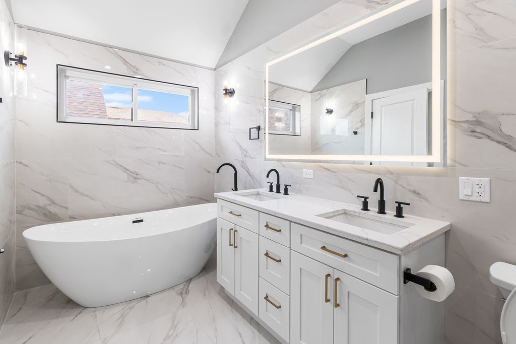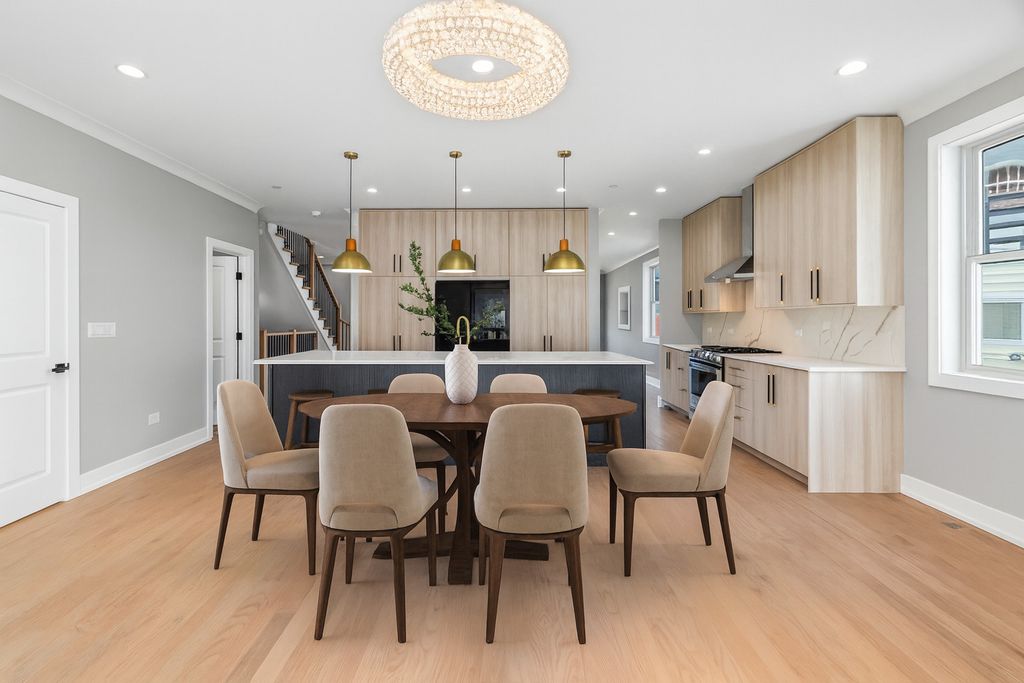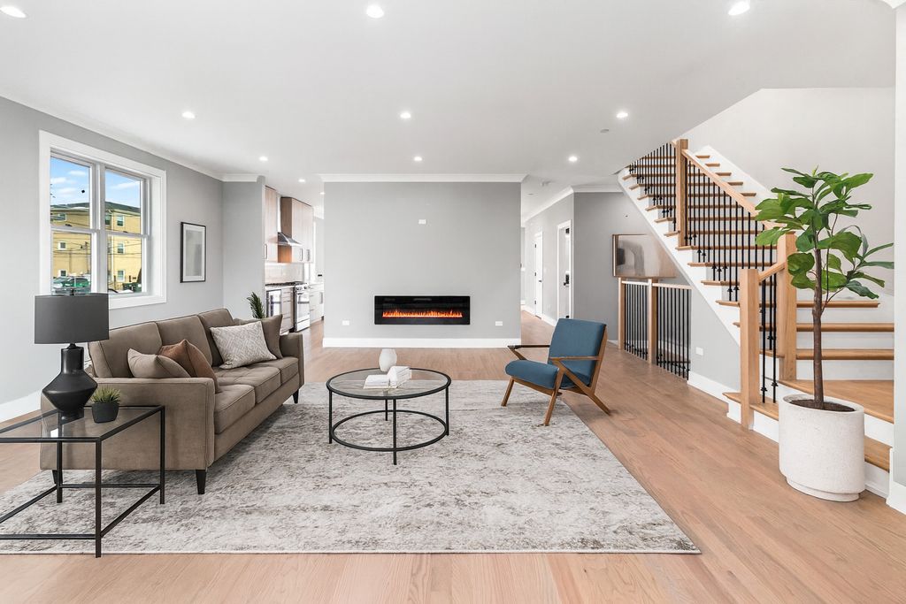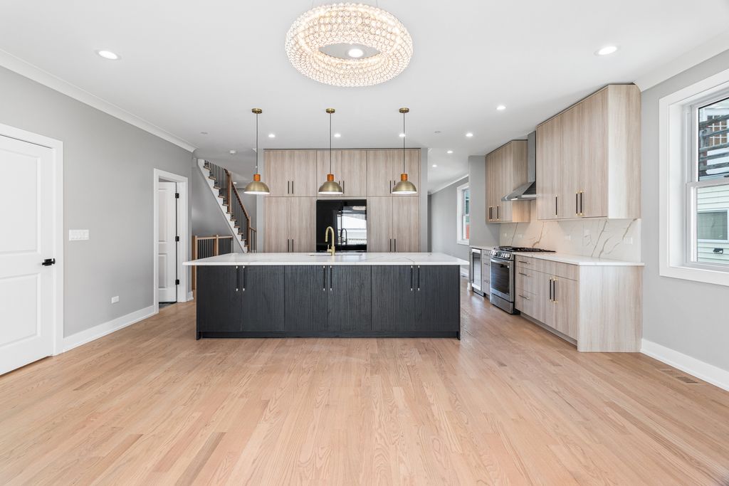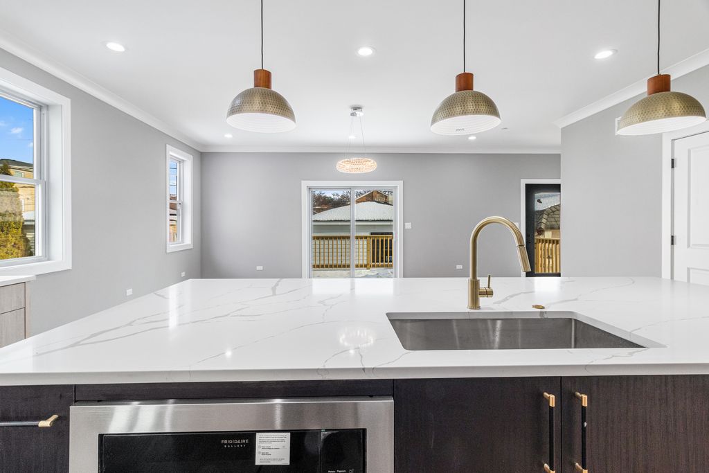 BRAND NEW CONSTRUCTION! Discover this exceptional 5-bedroom, 3.5-bath new construction home showcasing an open-concept layout with bright airy rooms and high-end finishes throughout. The gourmet kitchen is a chef's paradise, featuring sleek quartz countertops, top-tier stainless-steel appliances, a spacious island, and a cozy eating nook. The main level also includes a modern powder room along with large and welcoming living room and electric LED fireplace. Upstairs, the lavish master suite is a true retreat, complete with expansive walk-in closets and a private ensuite featuring a double-sink vanity and soaking tub. The second floor also includes three additional bedrooms, offering plenty of space for family and guests. The fully finished basement extends the living area with a wet bar, a large recreation room, a fifth bedroom, and another full bath-perfect for entertaining or hosting visitors. Step outside into the fenced yard with a charming deck, creating a peaceful outdoor oasis for relaxation or activities. The added convenience is a brand new 2-car garage and additional 1 space - exterior carport. With its prime location near the train station, shopping and dining this home offers both luxury and convenience.