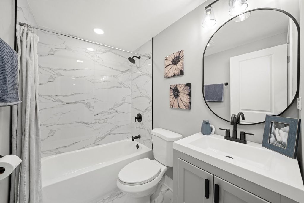 Welcome home to your 4 bed 2 bath brick raised ranch home. Fully rehabbed with all the bells and whistles, move-in ready! Enjoy having this open concept spacious living and dining room with refinished hardwood flooring throughout most of the main level. Cook your family meals in the BRAND NEW kitchen with white shaker cabinetry with black onyx hardware, quartz countertops, subway tile backsplash, and a convenient breakfast bar island. Brand new stainless steel appliances to finish the look. There are four generous sized bedrooms on the main floor, two that have walk in closets. Brand new bathroom with meticulous tilework and vanity. Head down to the fully finished basement with painted black exposed ceilings, brand new vinyl flooring, plenty of entertaining space and a full bathroom. Separate laundry and utility space and plenty of storage. Backyard has a huge deck off the back of the house, perfect for outdoor BBQ's and bonfires. Call & schedule your showing today!