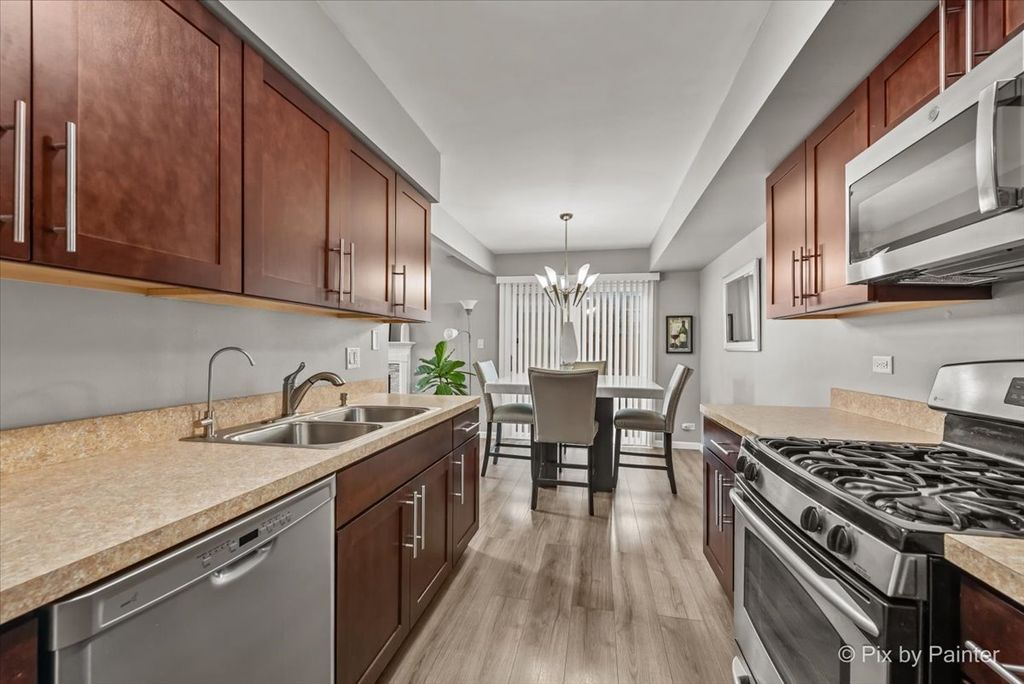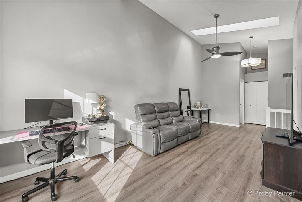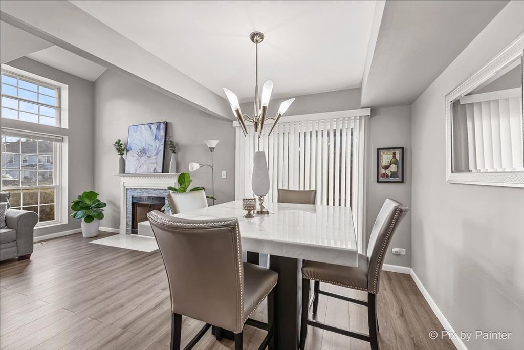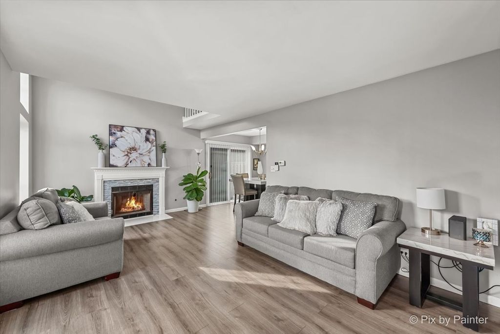 Bright and beautiful, this elegant, move-in-ready home is sure to impress! The remodeled kitchen offers a clean, modern aesthetic and opens seamlessly to a spacious family room featuring vaulted ceilings, skylight, and a cozy wood-burning fireplace-perfect for both everyday living and entertaining. The first floor also includes a convenient laundry area and a remodeled half bath. Recent updates include new flooring, fresh paint throughout, and a stunningly remodeled second-floor full bath, making this home truly turnkey. Outside, new siding (2016) enhances both curb appeal and long-term value. You'll love the attached two-car garage, finished with modern paint and a durable polyurea floor in 2024, along with an extra-long driveway that accommodates up to six vehicles-ideal for guests and gatherings. The private back patio with a privacy fence is perfect for grilling, relaxing, and enjoying some outdoor air. 11/2025 NEW ROOF - The location is unbeatable-walk to nearby parks and playgrounds, restaurants, banking, and local shops, with easy access to I-88 and a nearby commuter bus stop.