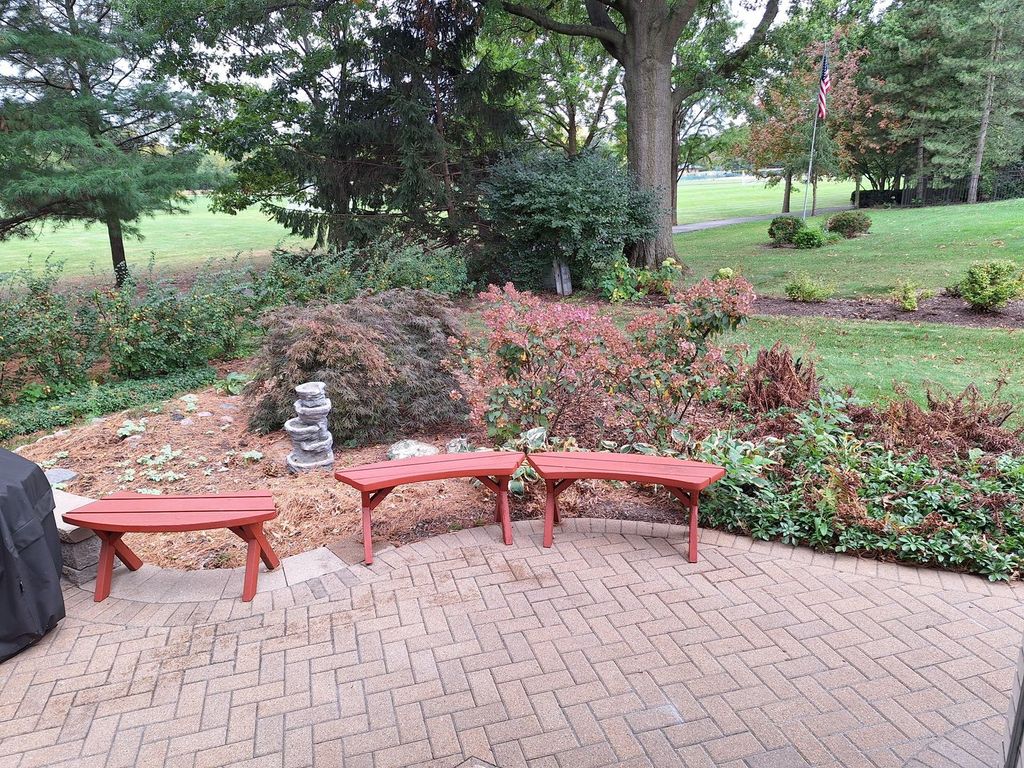 This beautifully maintained white brick ranch home in highly sought-after North Downers Grove is tucked away on a quiet cul-de-sac in desirable Sunny Hill Estates and backs directly to scenic Whitlock Park. Set on a nearly half-acre private, wooded lot, the home offers the rare combination of one-level living, privacy, and park-like surroundings - a true find in this area. Inside, the welcoming foyer opens to a bright and airy family room, dining room, kitchen, and sitting room, all showcasing beautiful exterior views. Solid hardwood floors extend throughout most of the home, enhancing the warmth and timeless appeal ranch buyers seek. The hallway offers abundant closet space and leads to three bedrooms and a spacious, updated hall bath with a large vanity and whirlpool tub/shower. The primary bedroom features a charming bow window, private bath, and serene views of the yard-ideal for comfortable main-level living. Step outside through the patio doors to enjoy a premium custom brick paver patio, matching walkways, professional landscaping, and mature trees-perfect for relaxing, entertaining, or enjoying the peaceful park setting. Brick pavers also enhance the front entry and extend across the generous driveway, offering ample parking for guests. The full unfinished basement provides excellent expansion potential, with a laundry area, sink, newer HVAC equipment, and extensive storage in the fully sealed crawlspace-ideal for buyers seeking flexibility for future living space or hobbies. Lovingly cared for by long-term owners, this home features numerous quality updates over the years (see full list in the "Additional Info" tab), including windows and doors, roof, furnace, A/C, humidifier, epoxy-coated garage floor, Leafguard gutters, hardwood floors, and appliances. Ideally located just minutes from top-rated North Downers Grove schools, Metra access, parks, shopping, dining, Yorktown and Oak Brook Malls, and with easy access to tollways and airports. Nearby, the new Talon Preserve subdivision with planned $1M+ homes further reinforces the neighborhood's long-term value. Ranch homes in this location rarely come available-this is a special opportunity to own a truly exceptional home in one of Downers Grove's most desirable neighborhoods.