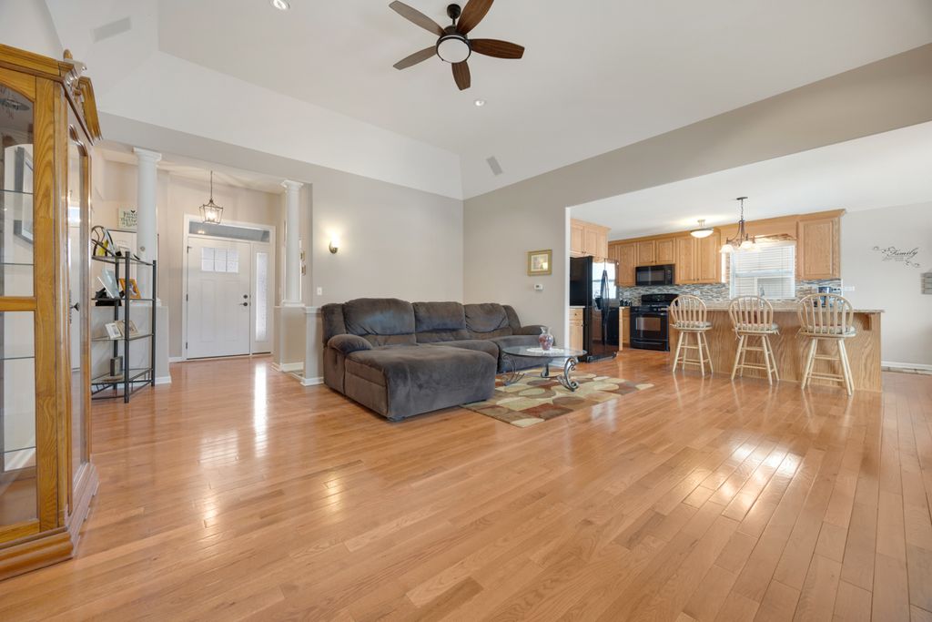 Excellent opportunity for this 3-4 bedroom brick, stone and vinyl siding true ranch! Features include pillared entry with hardwood floor and front door with transom! Open living room features tray ceiling, hardwood floor, ceiling fan, recessed lighting and fireplace! Large kitchen includes hardwood floor, granite countertops, raised panel cabinets, glass subway tile, walk in pantry and oversized island! Spacious breakfast area with service slider door to the patio! Primary bedroom features walk in closet and slider door to the concrete patio! Primary bath includes raised vanity and 5 ft shower! (2) Additional bedrooms with wood blinds! Full guest bath with raised vanity! Open staircase to the partially finished full basement includes family/media room, laundry room with walk-in closet, office/fourth bedroom with wood blinds and closet, 3/4 bath with raised vanity and multiple walk in storage areas! Awesome backyard with tons of usable yard space and concrete patio with overhang! (2) Car attached garage with epoxy floor, service door to exterior and garage door with transom! White (2) panel doors and trim! Rounded drywall corners! Newer high efficiency furnace! water softener, water treatment high efficiency furnace, high efficiency water heater. Estate Sale. Sold "As Is".