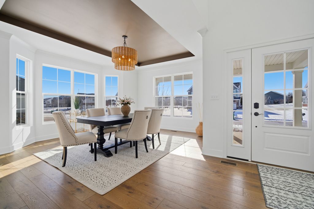 Welcome to this striking modern farmhouse featuring a welcoming covered front porch, crisp white siding, and a timeless stone base. The home sits beautifully on an expansive lawn overlooking the 4th hole of Hawthorn Woods Country Club. This beautifully crafted Hudson model was built in 2024 with exceptional attention to comfort, quality, and modern design.The heart of this 4-bedroom, 3.5-bath home is an open-concept kitchen designed for both everyday living and entertaining. The gourmet kitchen features an oversized quartz island with generous seating and storage, complemented by a walk-in pantry for added functionality. The kitchen flows seamlessly into the bright living and dining areas, where large windows create an airy, inviting atmosphere ideal for gathering and relaxing.A versatile main-level room offers flexibility for a home office, guest space, or flex room. The home delivers a classic, current, and effortlessly elegant feel with rich wide-plank hardwood floors, abundant natural light, vaulted ceilings, and thoughtful finishes throughout. An oversized, side-load, 3-car, insulated garage with epoxy floors provides ample room for storage-or even a golf simulator. With so many upgrades, and a convenient whole house Generac generator, this home is truly a must-see! Set in the heart of the prestigious Hawthorn Woods Country Club community, this residence offers the perfect blend of luxury and tranquility. Enjoy a lifestyle enriched by premier amenities, including championship golf, swimming pool, tennis and paddle tennis courts, full-service dining, bar, fitness facilities, and an incredible calendar of social events. Ideally situated just minutes from downtown Lake Zurich, Deer Park Mall, major interstates, outdoor recreation, and top-rated schools, this home delivers both convenience and an unparalleled country club experience. Everything you need is here! Schedule your showing today.