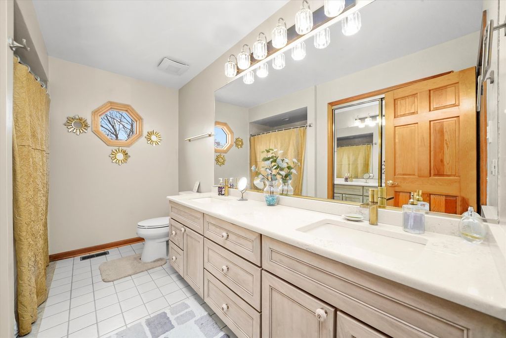 Welcome to this beautiful brick single family home ideally situated on a quiet cul-de-sac within the highly acclaimed Naperville Central High School district. The open-concept kitchen is a standout, featuring a large center island, quartz countertops, updated cabinetry, and porcelain tile flooring that extends through the kitchen and foyer. A highly functional floor plan includes a first-floor office/den, four generously sized bedrooms on the upper level, and a massive finished basement with new luxury vinyl plank flooring. The primary suite is a true retreat, complete with a spacious walk-in closet and a spa-like ensuite bathroom showcasing a new shower (2022), shower ceiling ventilation (2021), custom vanity cabinetry with countertops (2020), new sink and faucets (2020), and a new vanity mirror (2020). Enjoy outdoor living in the expansive backyard with a composite wood deck, perfect for entertaining or unwinding. Additional highlights include wheelchair accessibility, a new roof, siding, and gutters, a new 50-gallon water heater, new furnace and air conditioning system, and a Tesla charger. With countless updates and an exceptional location, this home truly has it all. Make this your next place to call home! Explore the property in 3D-click the 3D button to take a virtual tour and experience every detail.