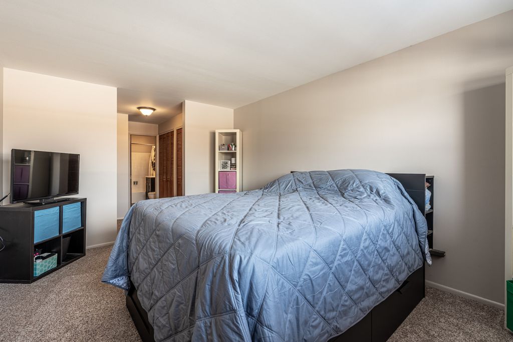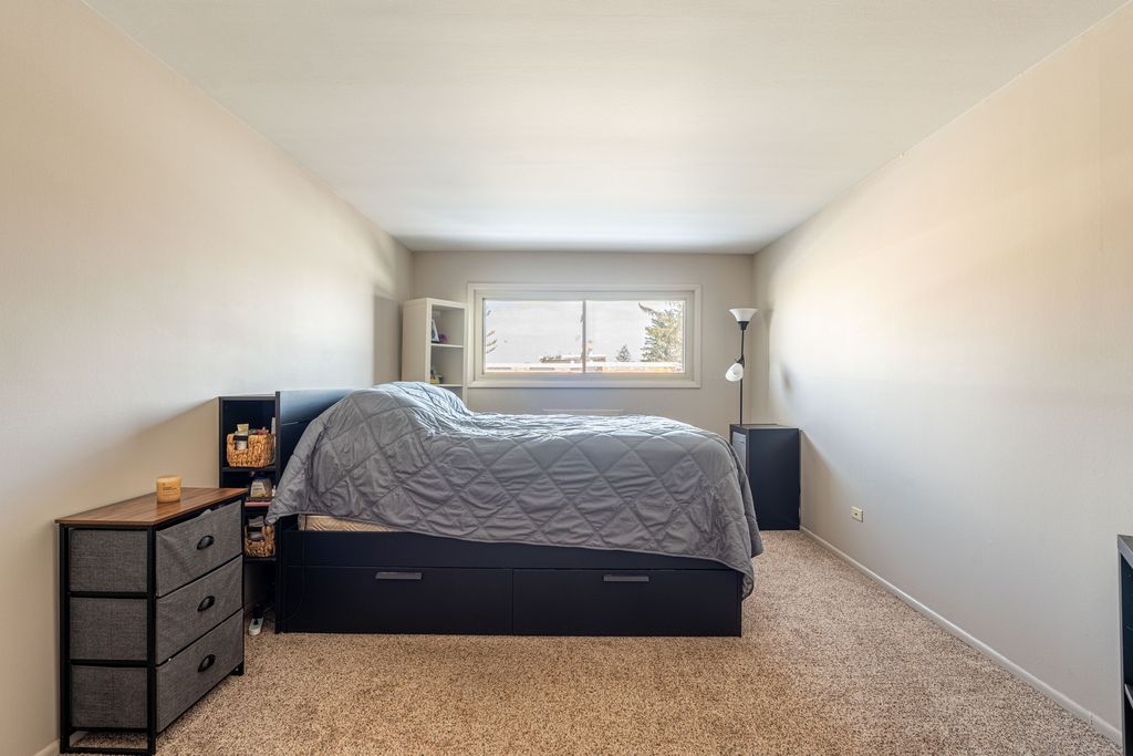 Welcome to this spacious end-unit one-bedroom, one-bath condo, offering abundant natural light and views overlooking a charming single-family home neighborhood. The inviting kitchen features countertop seating-perfect for entertaining friends or enjoying casual meals. Retreat to the generously sized bedroom, comfortably fitting a king-size bed, with direct access to the primary bathroom, and lots of closet space for added convenience. Start your day on the private balcony, basking in the morning sun with your favorite beverage. The building offers practical amenities, including coin laundry and storage lockers located in the basement. For a relaxing outdoor escape, enjoy the beautifully maintained courtyard, easily accessible from the laundry room. The HOA covers heat, water, swimming pool, two parking spaces, exterior maintenance, lawn care, snow removal, and scavenger-providing peace of mind and easy living. Also, Street parking is available directly in front of the unit on the east side of Lore Lane, with overnight parking permitted up to four times a month by notifying the village. For guests and showings, convenient parking is available on the east side of Lore Lane near Collen Drive, right in front of building 120A, in addition to designated visitor parking. All this conveniently located close to I-355, Metra, Restaurants, shops, grocery, and Four Season Park. Don't miss this opportunity to enjoy comfort, convenience, and a wonderful community in your next home!