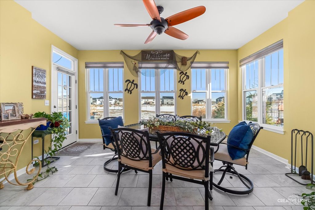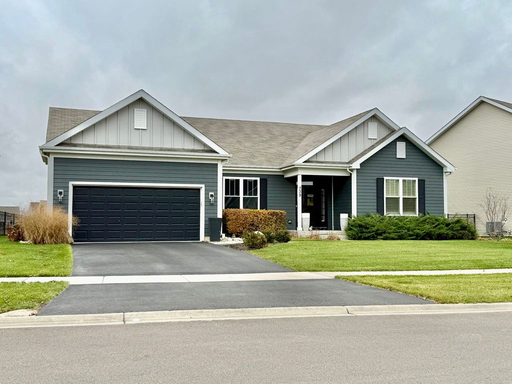 Better than new construction! Built in 2018 and meticulously maintained, this stunning ranch home is located in the highly desirable Ashcroft Place Estate Community of Oswego. Offering 3 bedrooms and 2 full bathrooms, this open-concept layout provides both comfort and style-perfect for your own private oasis. The spacious primary suite features an en-suite bathroom, custom California Closets, and elegant double French doors. The open floor plan boasts soaring 12-foot ceilings and includes a generous family room, formal dining area, walk-in pantry, convenient first-floor laundry, and a bright sunroom with double French doors. The full, unfinished basement offers endless potential to customize and expand to suit your needs. Step outside to an entertainer's dream backyard, complete with a stone-paved fireplace and hot tub, all overlooking a serene pond-ideal for relaxing evenings or hosting unforgettable gatherings. Thoughtfully upgraded throughout, this home features an enhanced HVAC system, irrigation system, and numerous additional improvements (see the full list in Additional Documents). Located in the highly sought-after Oswego School District, with nearby parks, walking paths, and school bus service available. This truly move-in-ready home combines comfort, quality upgrades, and an unbeatable setting-don't miss this exceptional opportunity!