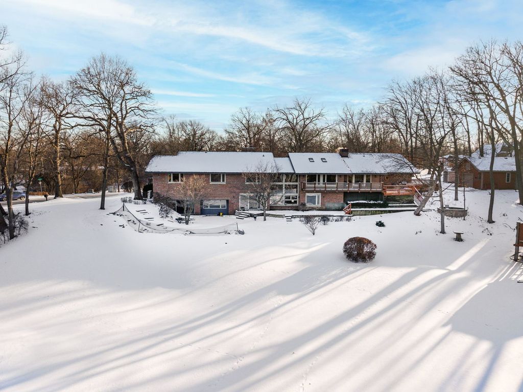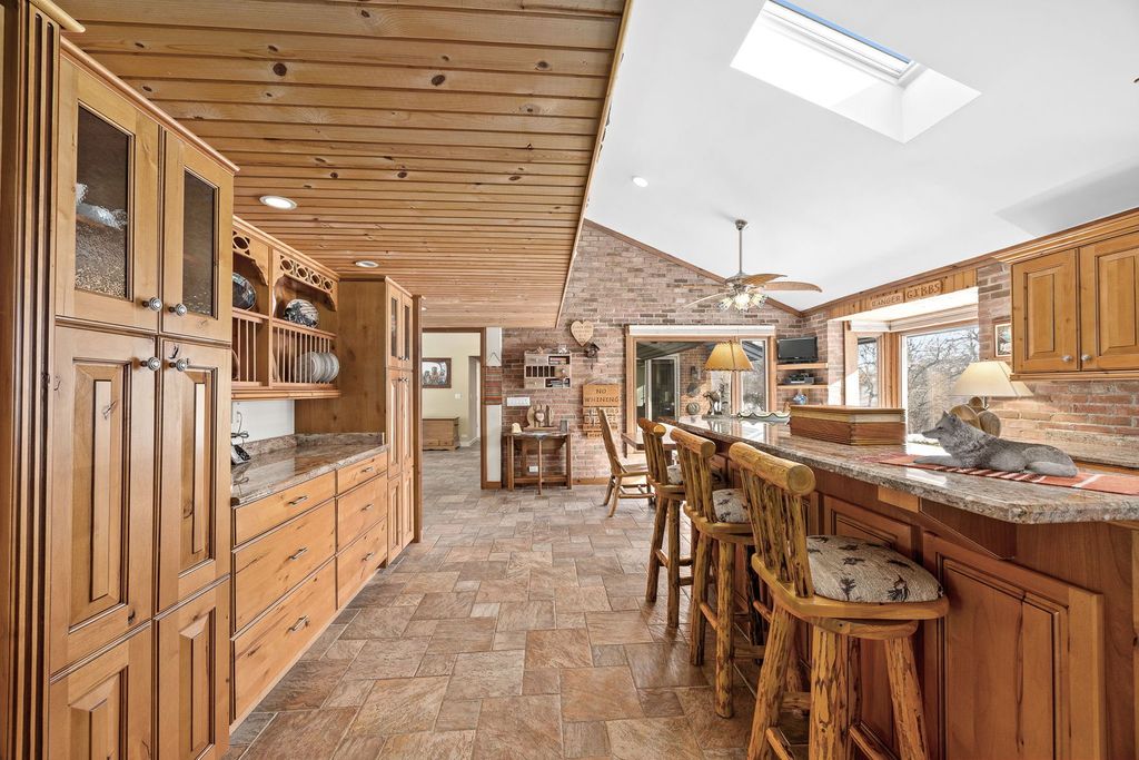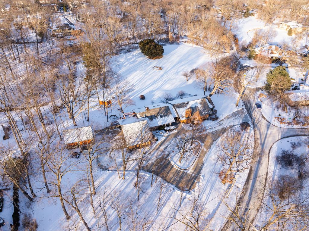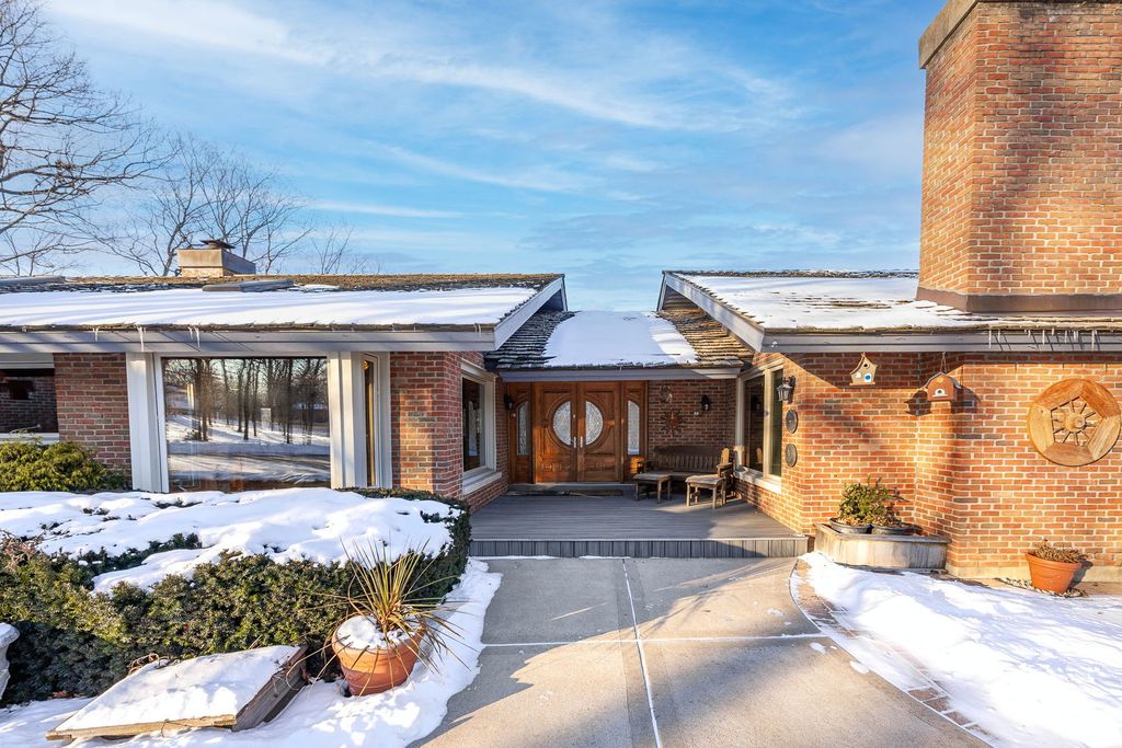 An Offering of Extraordinary Rarity! Meticulously maintained and masterfully designed, this sprawling all-brick ranch delivers rustic elegance and timeless luxury on 3.5 acres of private, wooded serenity where a winding creek, abundant wildlife, and enduring craftsmanship create a setting rarely found and seldom available. Natural light pours through oversized picture windows, illuminating a dramatic, wide-open staircase that anchors the home and frames the surrounding landscape like living artwork. The aesthetic is warm, refined, and unmistakably lodge-inspired, blending high-end rustic character with classic, enduring appeal. Three-zone climate control ensures comfort and efficiency throughout. Designed for elevated everyday living and unforgettable entertaining, the residence offers five bedrooms plus a private office, including two primary en-suites, with one on main floor and one in basement. A private 3 car garage and laundry entrance provides an ideal layout for in-law living, a teenager's retreat, or seamless multi-generational living-privacy and practicality in perfect balance. The walk-out lower level is a destination of its own, featuring an arcade-style recreation room with a hand-painted mural, custom built-ins, wet bar, and temperature-controlled wine cellar. Hard-wired surround sound enhances the theater experience, while a six-person sauna room opens directly to a brick paver patio with waterfall. A life-sized, real-tree treehouse adds a whimsical and unforgettable touch. The chef's kitchen pairs beauty with function, offering granite countertops, premium finishes, and an expansive walk-in pantry. A thoughtfully designed first-floor laundry room includes a sink, broom closet, and separate exterior entrance for everyday convenience. Outdoor living is equally impressive with IPE decking, professional landscape lighting, and an extra-wide, extra-long circular driveway ideal for entertaining, all while embracing the peaceful, wooded surroundings. Car enthusiasts and business owners will appreciate the 3-car attached heated garage with epoxy floors, along with a separate 2-car garage perfect for a workshop, home-based business, or prized collection. With five bathrooms, and an office with extensive updates completed in 2018, and exceptional flexibility throughout, this estate seamlessly blends rustic charm, refined luxury, privacy, and versatility. More than a home this is a legacy property. Rare. Remarkable. An offering of extraordinary rarity.
