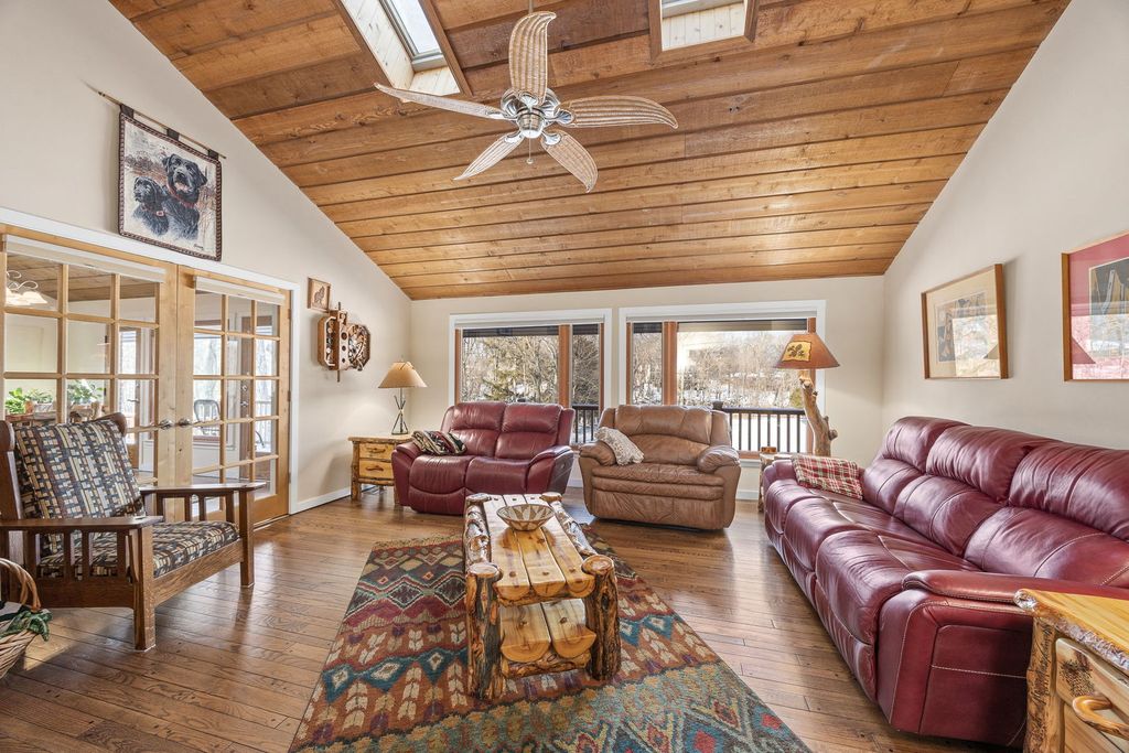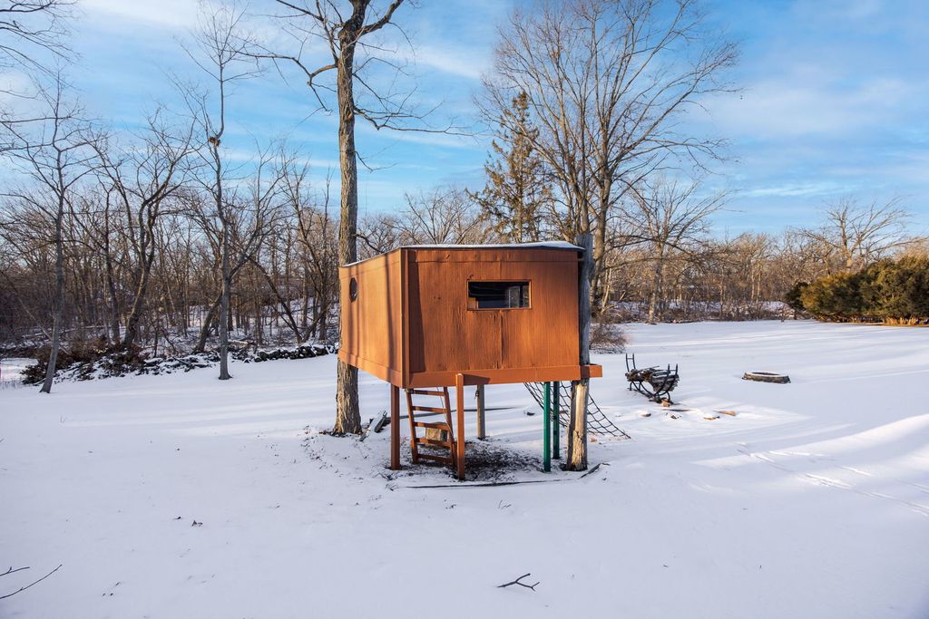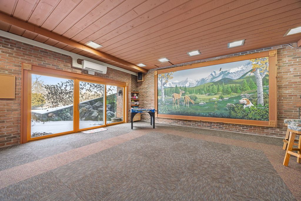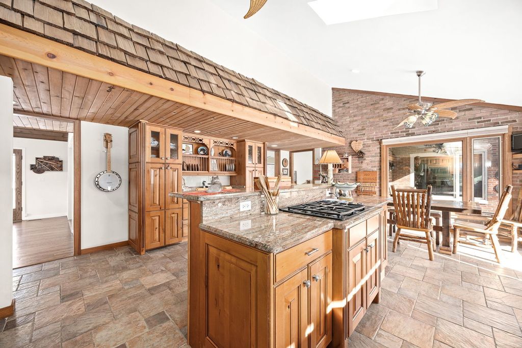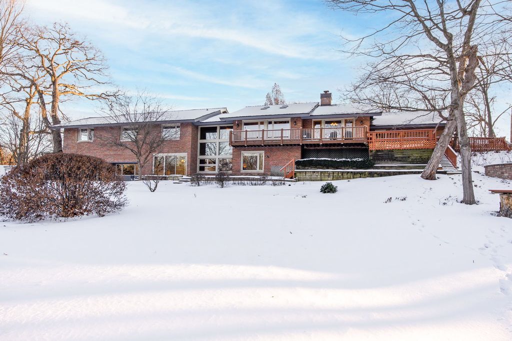 An Offering of Extraordinary Rarity! Meticulously maintained and masterfully designed, this sprawling all-brick ranch delivers rustic elegance and timeless luxury on 3.5 acres of private, wooded serenity where a winding creek, abundant wildlife, and enduring craftsmanship create a setting rarely found and seldom available. Natural light pours through oversized picture windows, illuminating a dramatic, wide-open staircase that anchors the home and frames the surrounding landscape like living artwork. The aesthetic is warm, refined, and unmistakably lodge-inspired, blending high-end rustic character with classic, enduring appeal. Three-zone climate control ensures comfort and efficiency throughout. Designed for elevated everyday living and unforgettable entertaining, the residence offers five bedrooms plus a private office, including two primary en-suites, with one on main floor and one in basement. A private 3 car garage and laundry entrance provides an ideal layout for in-law living, a teenager's retreat, or seamless multi-generational living-privacy and practicality in perfect balance. The walk-out lower level is a destination of its own, featuring an arcade-style recreation room with a hand-painted mural, custom built-ins, wet bar, and temperature-controlled wine cellar. Hard-wired surround sound enhances the theater experience, while a six-person sauna room opens directly to a brick paver patio with waterfall. A life-sized, real-tree treehouse adds a whimsical and unforgettable touch. The chef's kitchen pairs beauty with function, offering granite countertops, premium finishes, and an expansive walk-in pantry. A thoughtfully designed first-floor laundry room includes a sink, broom closet, and separate exterior entrance for everyday convenience. Outdoor living is equally impressive with IPE decking, professional landscape lighting, and an extra-wide, extra-long circular driveway ideal for entertaining, all while embracing the peaceful, wooded surroundings. Car enthusiasts and business owners will appreciate the 3-car attached heated garage with epoxy floors, along with a separate 2-car garage perfect for a workshop, home-based business, or prized collection. With five bathrooms, and an office with extensive updates completed in 2018, and exceptional flexibility throughout, this estate seamlessly blends rustic charm, refined luxury, privacy, and versatility. More than a home this is a legacy property. Rare. Remarkable. An offering of extraordinary rarity.