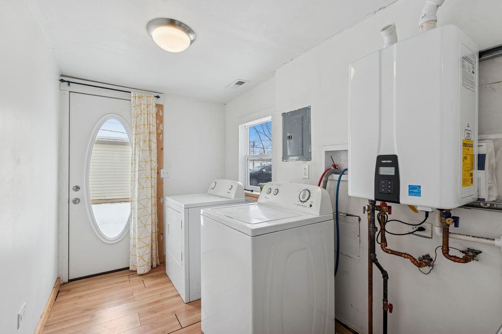 Charming 2-Bedroom Home on a Spacious Corner Lot - Updated & Full of Potential. This charming 2-bedroom, 1-bath home sits on a large corner lot and was thoughtfully updated in 2020, offering the perfect blend of modern updates and future potential. Step inside to a spacious living room and dining area, ideal for relaxing or entertaining, with an updated kitchen featuring newer cabinets. (New Roof 2022)(New siding & windows 2021)(New Gutters 2023)(New attic insulation 2023)(Whole house rewire with upgraded electrical 2021), Enjoy year-round comfort with a newer furnace, AC, and tankless water heater (2022), providing peace of mind for years to come. There's potential to convert existing square footage into a 3rd bedroom, making this an excellent home with room to grow on the oversized lot. Outdoor shed & firepit included. All that's left is your personal touch, come see how you can make this house your home!