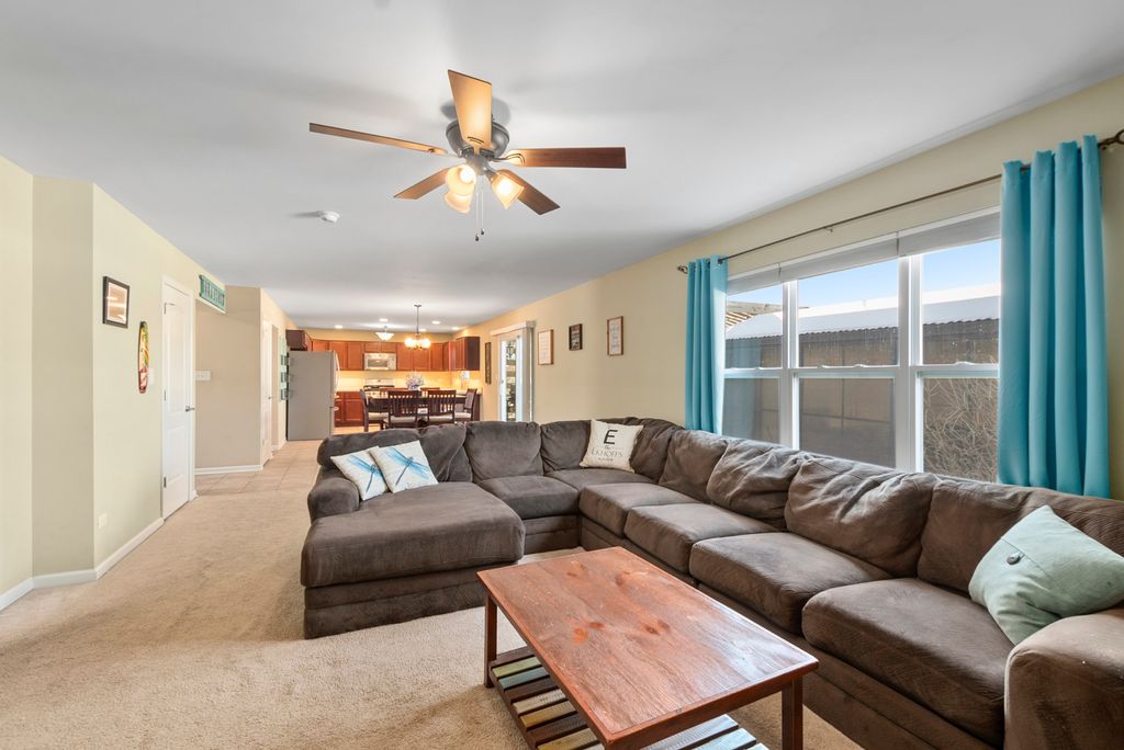 From the welcoming front porch, step into comfort, space, and easy everyday living in this impressive 4-bedroom, 2.5-bath two-story home, situated on a prime corner lot directly across from a neighborhood park. Only 10-years young and larger than any new-builds in the area, this 2600 SF home (plus full basement) offers a thoughtful layout designed for both gathering and relaxation. Inside, premium white trim and doors, and an abundant of windows, frame a bright open floor plan that seamlessly connects the expansive kitchen, eating area, and family room--the true heart of the home. The kitchen is perfect for the avid cook with generous workspace and light, and features beautiful birch cabinetry, stainless steel appliances, a full pantry, breakfast bar, and plenty of table space for family and friends. A separate dining room offers flexibility and can serve as a living room or formal entertaining space. The main floor also boasts a laundry/mudroom with built-in cubbies--a stylish and functional home feature for everyday entry. Upstairs, is the spacious primary suite with walk-in closet and private bath featuring a step-in shower and full linen closet. Three additional well-sized bedrooms, a large shared bath, and a quaint loft area provide space to grow and spread out on the second level. The full unfinished basement awaits renovation ideas and offers excellent storage and future expansion potential. For the garage enthusiast, this one is heated, equipped with a separate 60amp electric panel, has a sink for clean-up use, and ample storage for tools and equipment. Outdoors further sets this home apart from new construction, not just with a fully fenced, landscaped yard, but enhanced with a large deck, pergola and built-in seating around a natural gas fire table--a perfect setting and retreat for those summer nights. The yard also features a screened patio and 6-person hot tub (as-is) for year-round enjoyment. This is a great opportunity in desirable Prairie Park subdivision to move right in and enjoy modern amenities and conveniences of an existing well-appointed home.