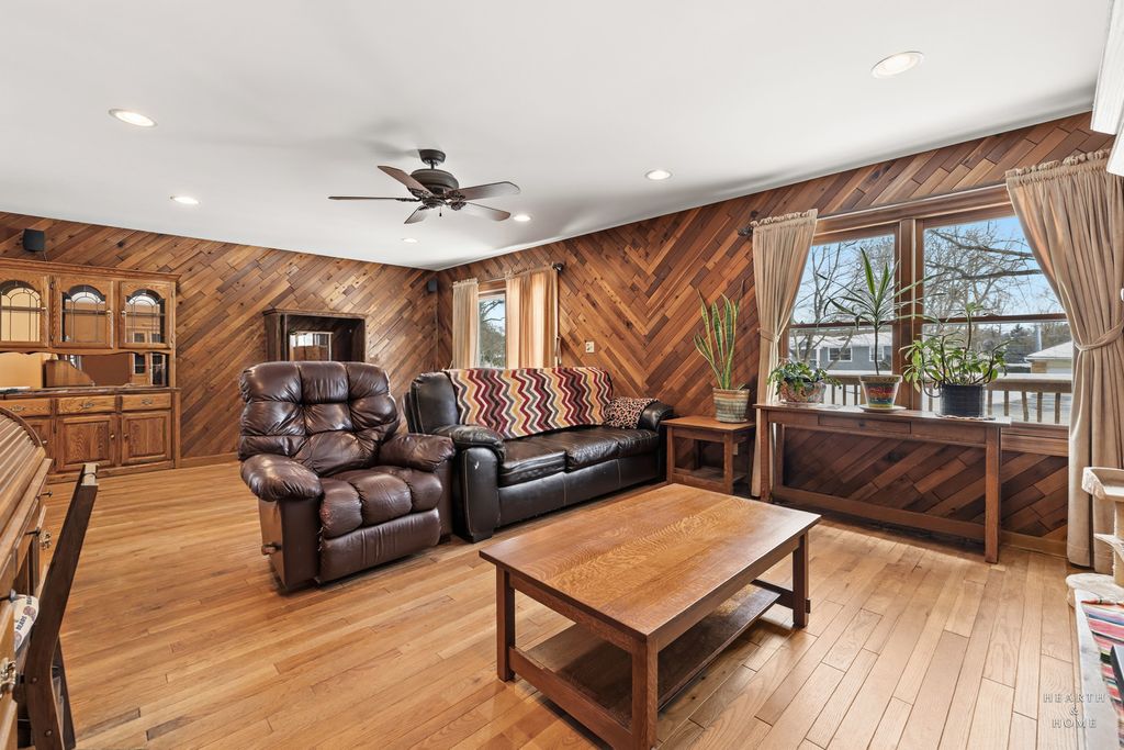 Nestled just minutes from Veteran Acres and vibrant downtown Crystal Lake, this inviting 3-bedroom, 2.5-bath home blends timeless character with thoughtful updates. Wrapped in classic cedar siding and featuring a roof just 3 years old, the home immediately welcomes you with charm and curb appeal. Inside, you'll find a warm, lodge-like feel with rich cedar paneling, hardwood floors, and cozy gas fireplaces that create an inviting atmosphere throughout. All bedrooms feature newer carpet, offering comfort and freshness where it matters most. The lower level is a standout, offering a true in-law arrangement complete with a full kitchen, spacious family room, and full bath, perfect for multi-generational living, guests, or added flexibility. Additional highlights include a 2-car garage with abundant storage, a newer water heater (2022), and a layout that effortlessly balances functionality and comfort. All of this in an unbeatable Crystal Lake location close to nature, dining, shopping, and community events. This is a home that feels as good as it looks- warm, welcoming, and ready to be lived in.