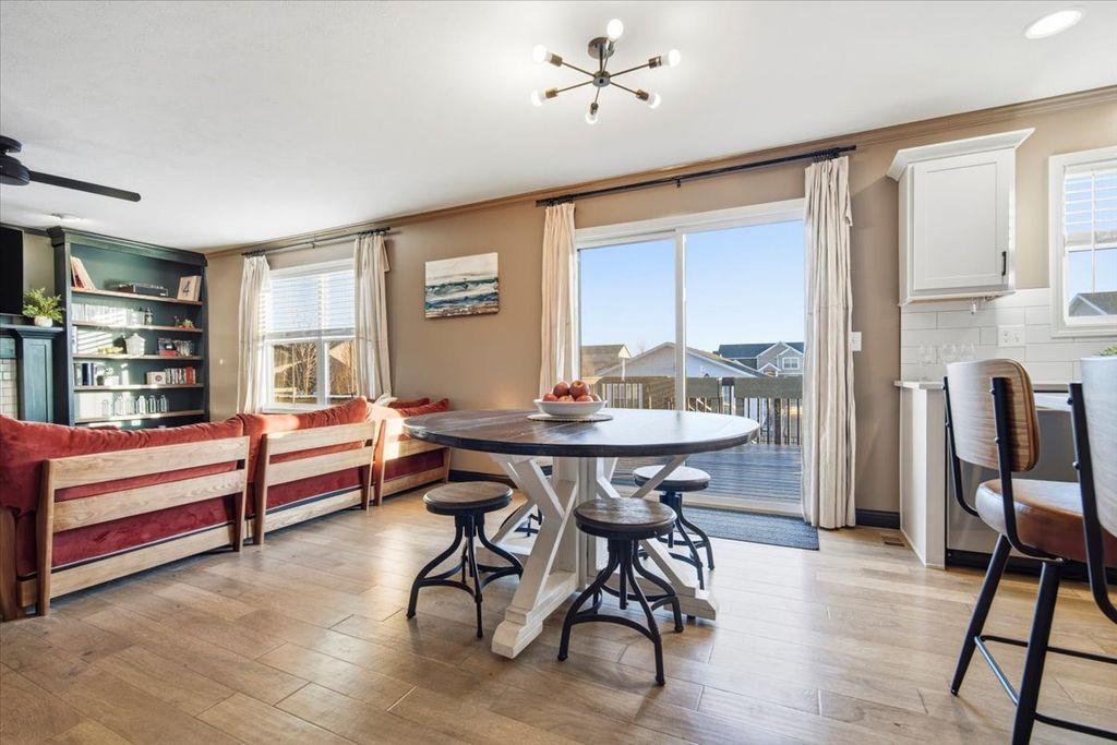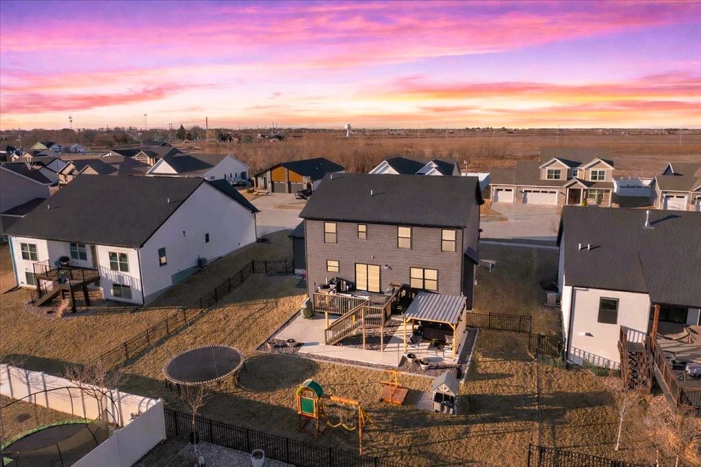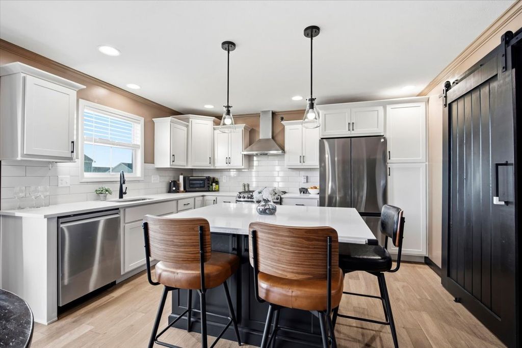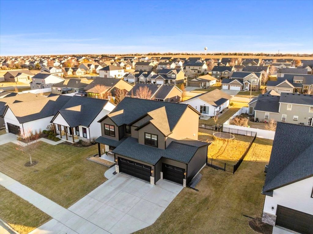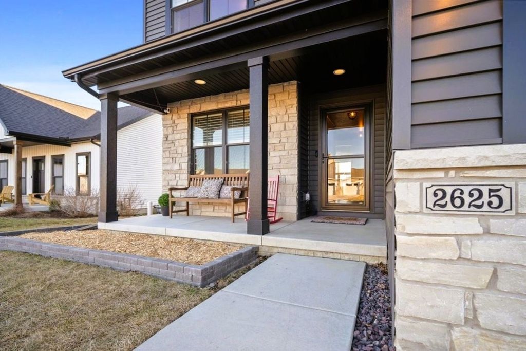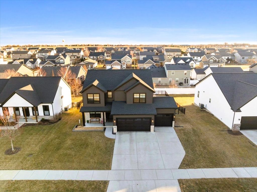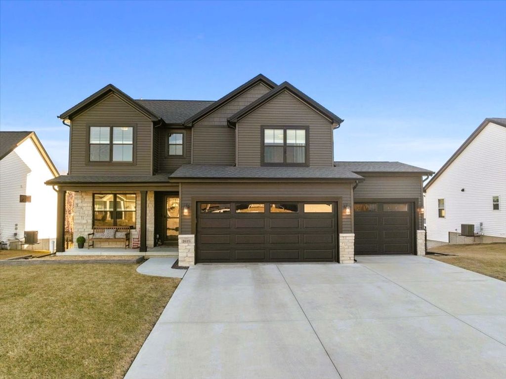 This quietly striking better than new beauty in Blackstone Trails offers impressive upgrades inside and out! Quality 2022 Franke build offers upgraded modern flair fixtures, rich paint selections, custom wood moldings and trim plus tasteful design touches throughout. Three modern and bright finished levels of living include 5 spacious bedrooms, 3.5 baths, 3-Car Garage plus a finished lower level with daylight windows offering airy flow for entertaining, storage and sleep space. Dramatic deep charcoal siding and windows contrast the weathered stone as you pass through the expansive covered front porch and into the inviting foyer, where you'll be greeted by the soft glow of an edison bulb pendant softly illuminating the metallic gold ceiling and custom moldings. Pass through the frosted french doors into the main level office space which has just received a fresh coat of cozy caramel paint, a serene space for ultimate privacy and productivity! Follow the blonde engineered hardwoods into the open concept family room with custom built-ins, cans, and cozy gas fireplace with subway tile surround. A wall of south-facing windows washes the space in natural light and invites you to linger longer in the eat-in kitchen or pass through the glass slider beckoning you to enjoy the raised deck for easy entertaining. Warm and inviting kitchen features pearl white cabinets with crown, quartz counters, subway tile backsplash and sharp stainless appliance suite including side-by-side refrigerator, undermount sink, dishwasher and low-profile gas range with range hood. Island offers additional seating and prep space plus nearby devoted pantry and drop-zone for added convenience. The open split staircase invites you to explore the light and bright second story offering vaulted primary suite with walk-in closet and private ensuite featuring dramatic hex tile, double sink vanity and oversized walk-in shower. Three additional bedrooms offer spacious closets with built-in shelving and another impressive full bathroom featuring another double sink vanity and separate tub/shower combo just great for guests. Convenient upper level laundry room features striking moroccan style tile and tons of storage potential. The perfect position of this home on a sloped lot affords the lowest level an airy main level feel with full-sized daylight windows flooding the second family room with natural light. Nearby full bathroom and 5th bedroom with impressive closet space offers privacy and comfort for extended stay guests and in-laws to enjoy. Well-planned exterior improvements include extensive landscaping and rock surrounding the home, plus fully fenced lot and impressive multi-level entertaining space including raised deck and poured lower patio with covered pergola for year-round enjoyment, just the right fit for a hot tub (negotiable) or fire pit! Utility room houses the HVAC system, radon mitigation system, sump pump, gas water heater and impressive Express Whole-Home Water Filtration System (owned) plus additional bonus space to add a 6th bedroom, workshop or fitness area if desired. Bus service to sought after Unit 5 Schools and easy access to Veterans Parkway, Interstate 55/74 make location ideal. If you have been seeking sophisticated style beautifully blended with size and space, this is the one!