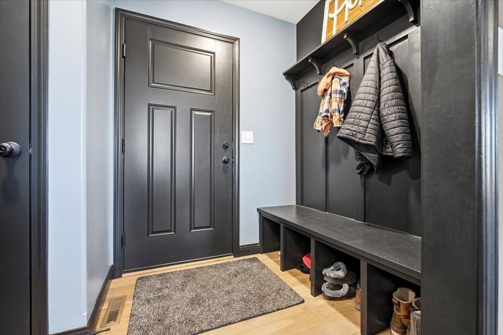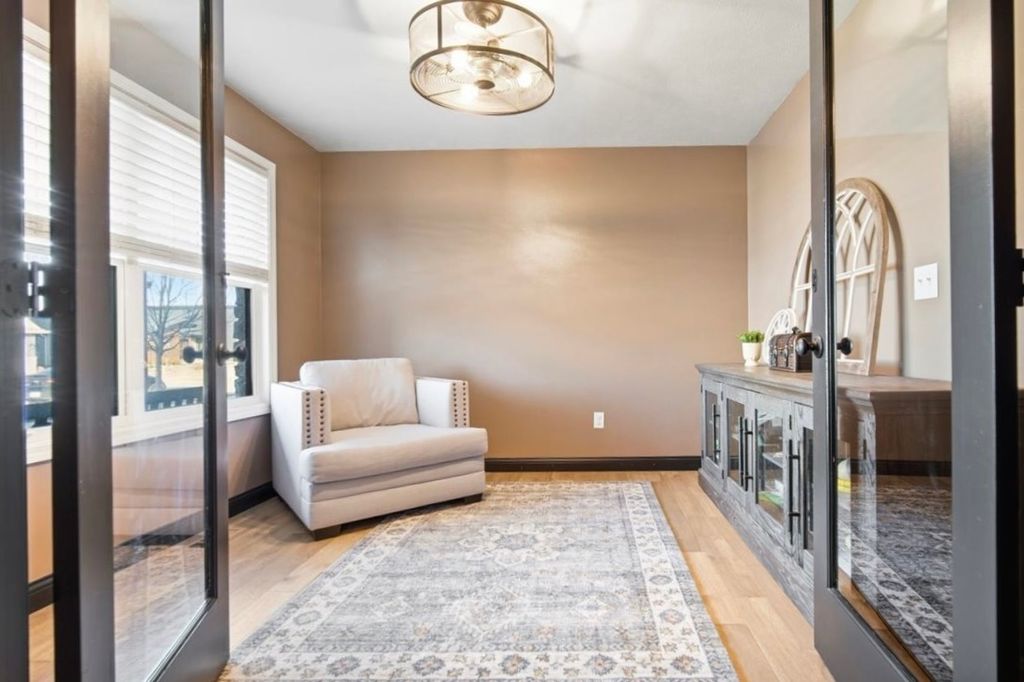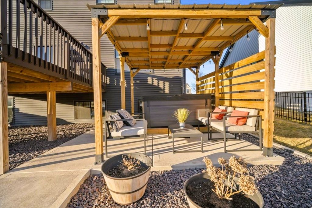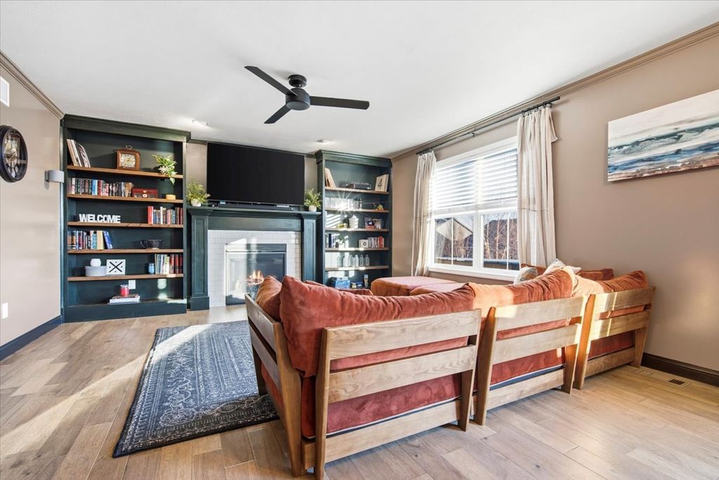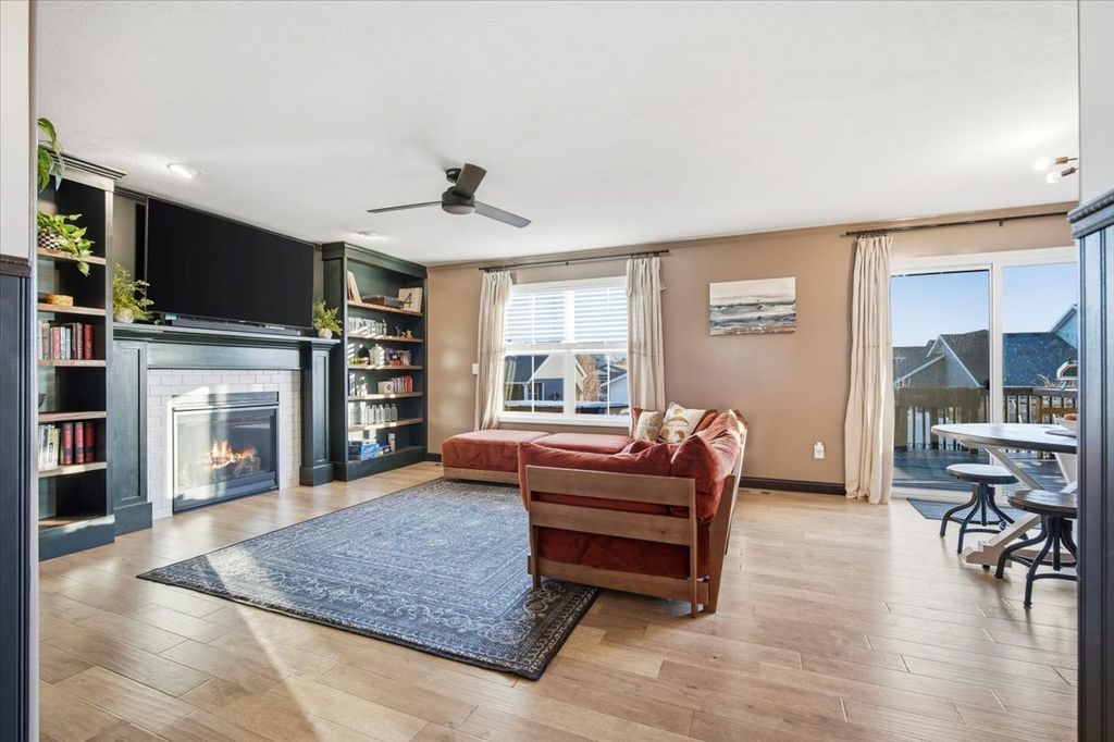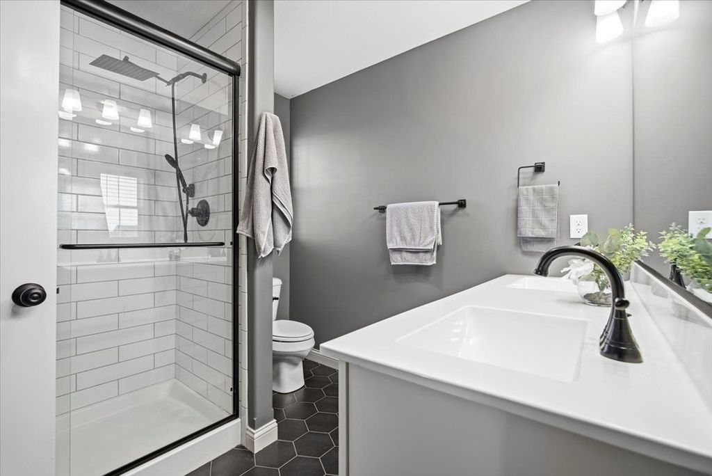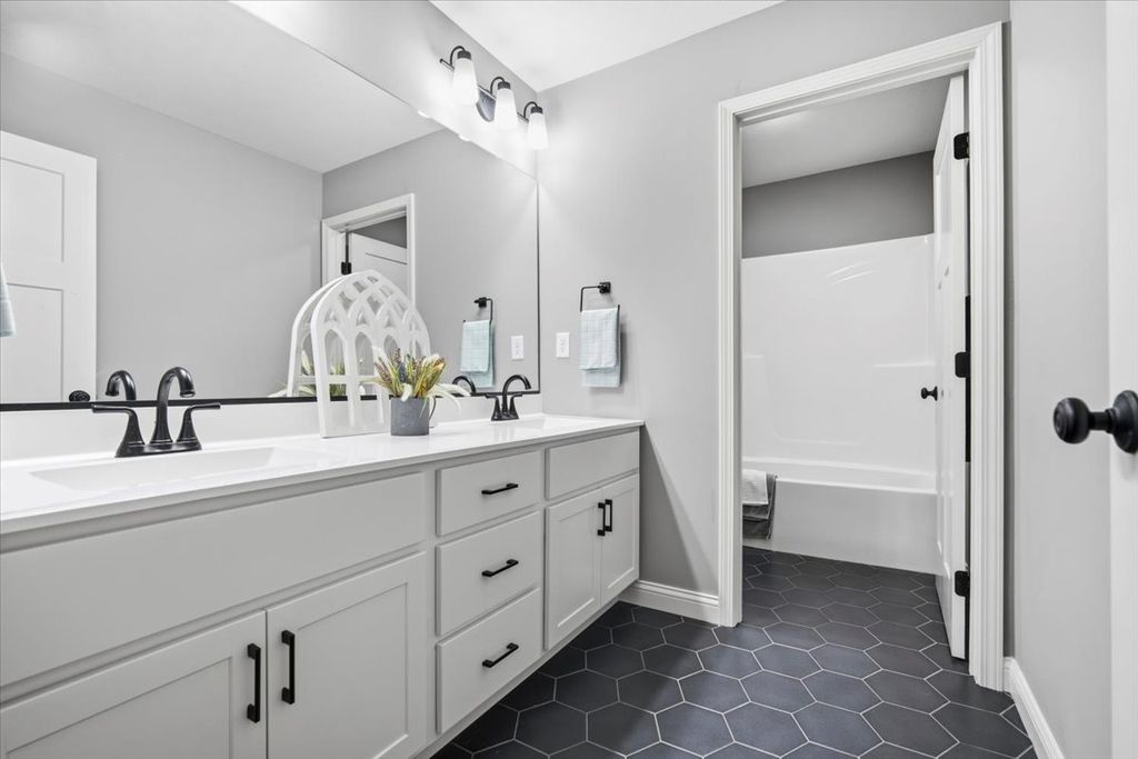 This quietly striking better than new beauty in Blackstone Trails offers impressive upgrades inside and out! Quality 2022 Franke build offers upgraded modern flair fixtures, rich paint selections, custom wood moldings and trim plus tasteful design touches throughout. Three modern and bright finished levels of living include 5 spacious bedrooms, 3.5 baths, 3-Car Garage plus a finished lower level with daylight windows offering airy flow for entertaining, storage and sleep space. Dramatic deep charcoal siding and windows contrast the weathered stone as you pass through the expansive covered front porch and into the inviting foyer, where you'll be greeted by the soft glow of an edison bulb pendant softly illuminating the metallic gold ceiling and custom moldings. Pass through the frosted french doors into the main level office space which has just received a fresh coat of cozy caramel paint, a serene space for ultimate privacy and productivity! Follow the blonde engineered hardwoods into the open concept family room with custom built-ins, cans, and cozy gas fireplace with subway tile surround. A wall of south-facing windows washes the space in natural light and invites you to linger longer in the eat-in kitchen or pass through the glass slider beckoning you to enjoy the raised deck for easy entertaining. Warm and inviting kitchen features pearl white cabinets with crown, quartz counters, subway tile backsplash and sharp stainless appliance suite including side-by-side refrigerator, undermount sink, dishwasher and low-profile gas range with range hood. Island offers additional seating and prep space plus nearby devoted pantry and drop-zone for added convenience. The open split staircase invites you to explore the light and bright second story offering vaulted primary suite with walk-in closet and private ensuite featuring dramatic hex tile, double sink vanity and oversized walk-in shower. Three additional bedrooms offer spacious closets with built-in shelving and another impressive full bathroom featuring another double sink vanity and separate tub/shower combo just great for guests. Convenient upper level laundry room features striking moroccan style tile and tons of storage potential. The perfect position of this home on a sloped lot affords the lowest level an airy main level feel with full-sized daylight windows flooding the second family room with natural light. Nearby full bathroom and 5th bedroom with impressive closet space offers privacy and comfort for extended stay guests and in-laws to enjoy. Well-planned exterior improvements include extensive landscaping and rock surrounding the home, plus fully fenced lot and impressive multi-level entertaining space including raised deck and poured lower patio with covered pergola for year-round enjoyment, just the right fit for a hot tub (negotiable) or fire pit! Utility room houses the HVAC system, radon mitigation system, sump pump, gas water heater and impressive Express Whole-Home Water Filtration System (owned) plus additional bonus space to add a 6th bedroom, workshop or fitness area if desired. Bus service to sought after Unit 5 Schools and easy access to Veterans Parkway, Interstate 55/74 make location ideal. If you have been seeking sophisticated style beautifully blended with size and space, this is the one!