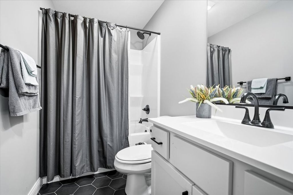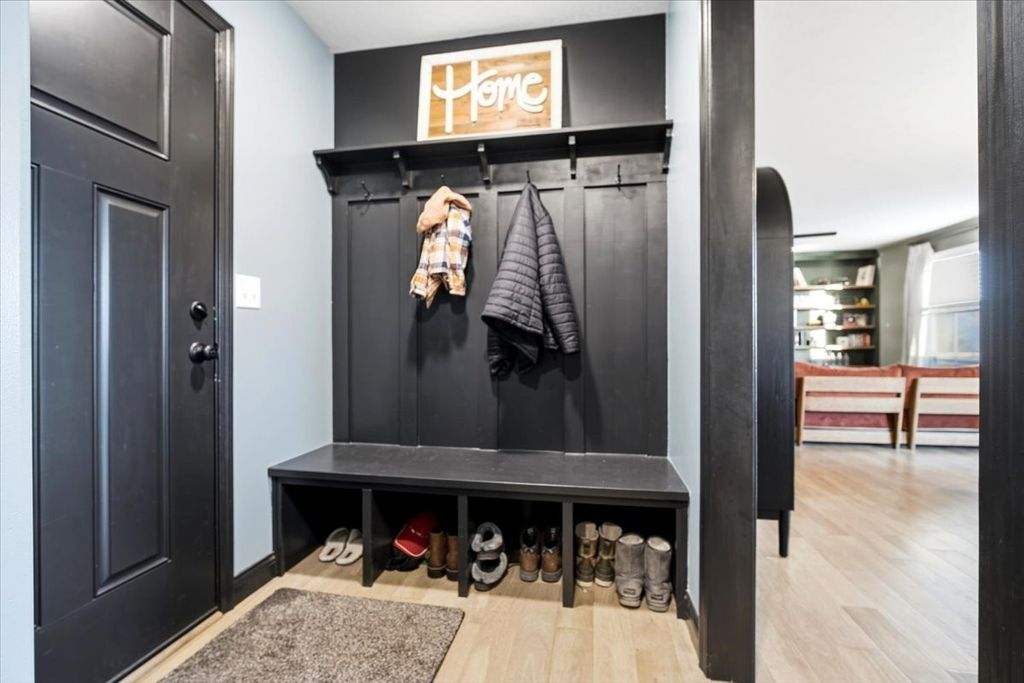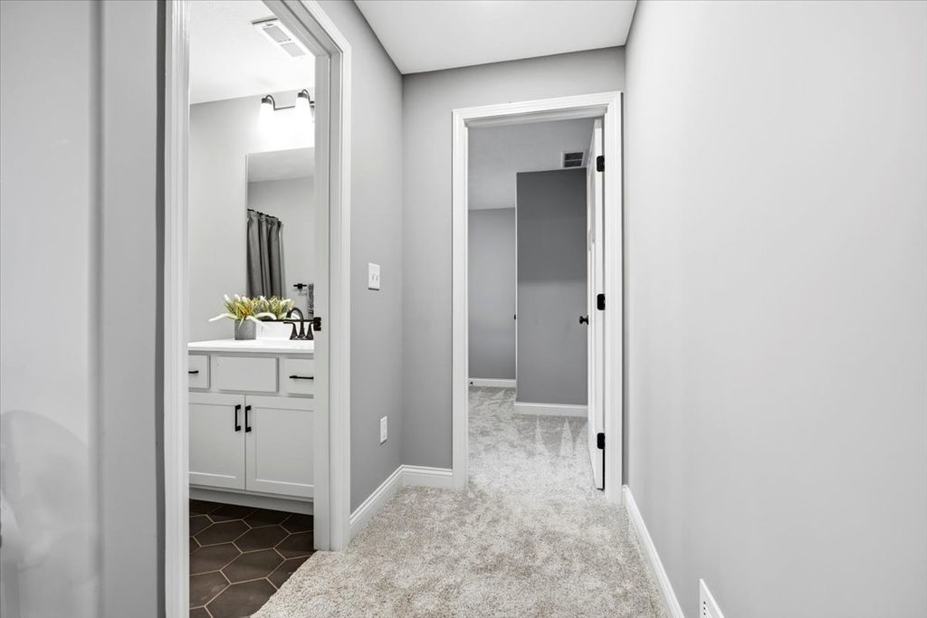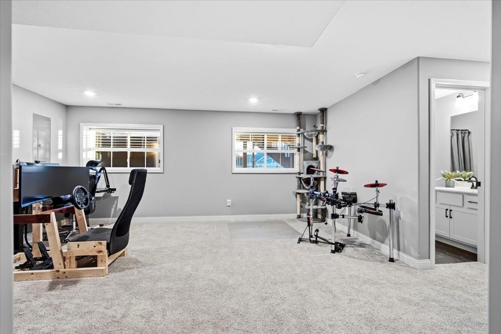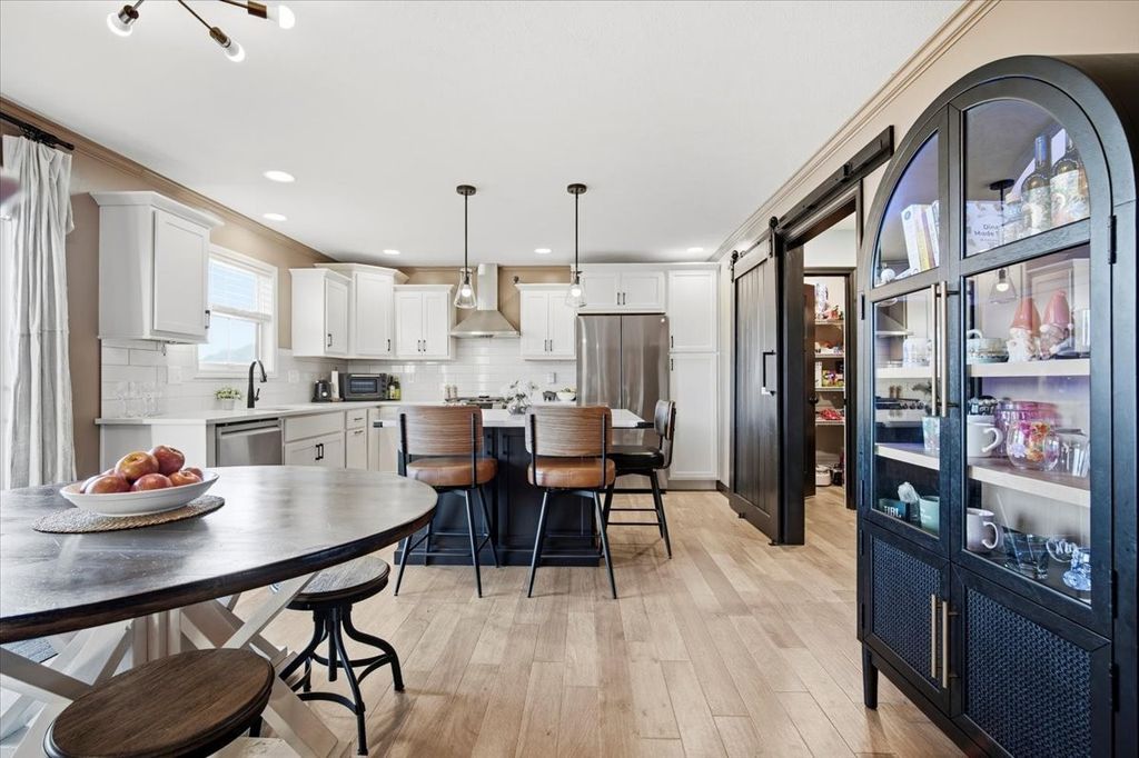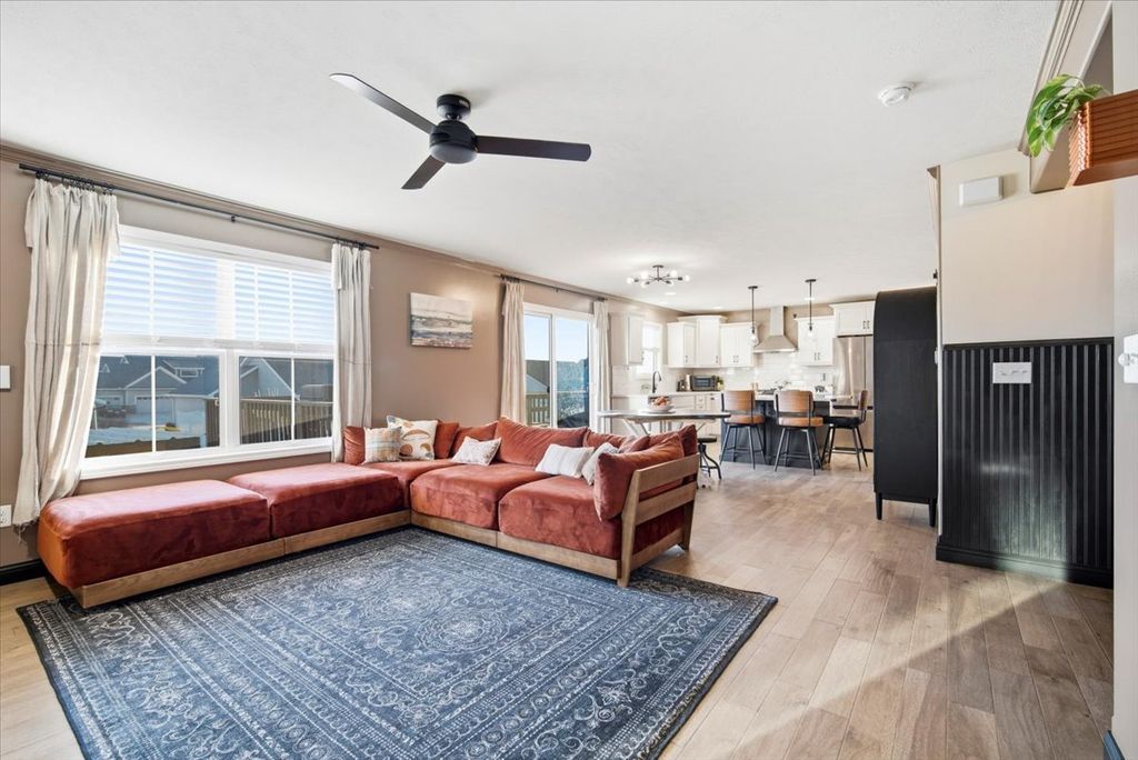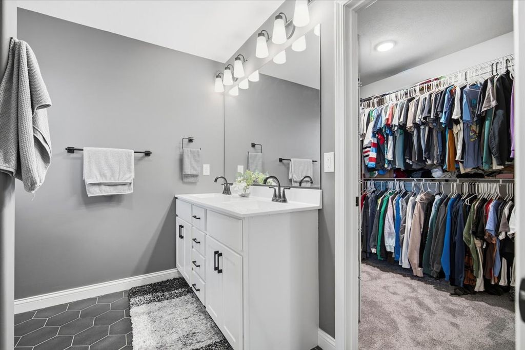 This quietly striking better than new beauty in Blackstone Trails offers impressive upgrades inside and out! Quality 2022 Franke build offers upgraded modern flair fixtures, rich paint selections, custom wood moldings and trim plus tasteful design touches throughout. Three modern and bright finished levels of living include 5 spacious bedrooms, 3.5 baths, 3-Car Garage plus a finished lower level with daylight windows offering airy flow for entertaining, storage and sleep space. Dramatic deep charcoal siding and windows contrast the weathered stone as you pass through the expansive covered front porch and into the inviting foyer, where you'll be greeted by the soft glow of an edison bulb pendant softly illuminating the metallic gold ceiling and custom moldings. Pass through the frosted french doors into the main level office space which has just received a fresh coat of cozy caramel paint, a serene space for ultimate privacy and productivity! Follow the blonde engineered hardwoods into the open concept family room with custom built-ins, cans, and cozy gas fireplace with subway tile surround. A wall of south-facing windows washes the space in natural light and invites you to linger longer in the eat-in kitchen or pass through the glass slider beckoning you to enjoy the raised deck for easy entertaining. Warm and inviting kitchen features pearl white cabinets with crown, quartz counters, subway tile backsplash and sharp stainless appliance suite including side-by-side refrigerator, undermount sink, dishwasher and low-profile gas range with range hood. Island offers additional seating and prep space plus nearby devoted pantry and drop-zone for added convenience. The open split staircase invites you to explore the light and bright second story offering vaulted primary suite with walk-in closet and private ensuite featuring dramatic hex tile, double sink vanity and oversized walk-in shower. Three additional bedrooms offer spacious closets with built-in shelving and another impressive full bathroom featuring another double sink vanity and separate tub/shower combo just great for guests. Convenient upper level laundry room features striking moroccan style tile and tons of storage potential. The perfect position of this home on a sloped lot affords the lowest level an airy main level feel with full-sized daylight windows flooding the second family room with natural light. Nearby full bathroom and 5th bedroom with impressive closet space offers privacy and comfort for extended stay guests and in-laws to enjoy. Well-planned exterior improvements include extensive landscaping and rock surrounding the home, plus fully fenced lot and impressive multi-level entertaining space including raised deck and poured lower patio with covered pergola for year-round enjoyment, just the right fit for a hot tub (negotiable) or fire pit! Utility room houses the HVAC system, radon mitigation system, sump pump, gas water heater and impressive Express Whole-Home Water Filtration System (owned) plus additional bonus space to add a 6th bedroom, workshop or fitness area if desired. Bus service to sought after Unit 5 Schools and easy access to Veterans Parkway, Interstate 55/74 make location ideal. If you have been seeking sophisticated style beautifully blended with size and space, this is the one!